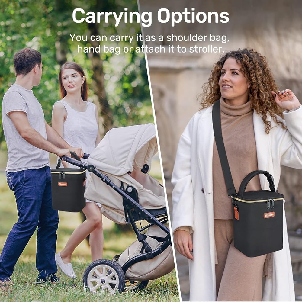 تصميم عملي: يتيح الإبزيم القابل للفصل الموجود في المقبض العلوي لحقيبة تبريد الزجاجات إمكانية ربط عربة الأطفال بسهولة، مما يحرر يديك للقيام بمهام أخرى. كما أنها تأتي مع حزام كتف قابل للتعديل لارتداء مريح. سحّاب ذهني ناعم ومتين يعمل بسهولة.