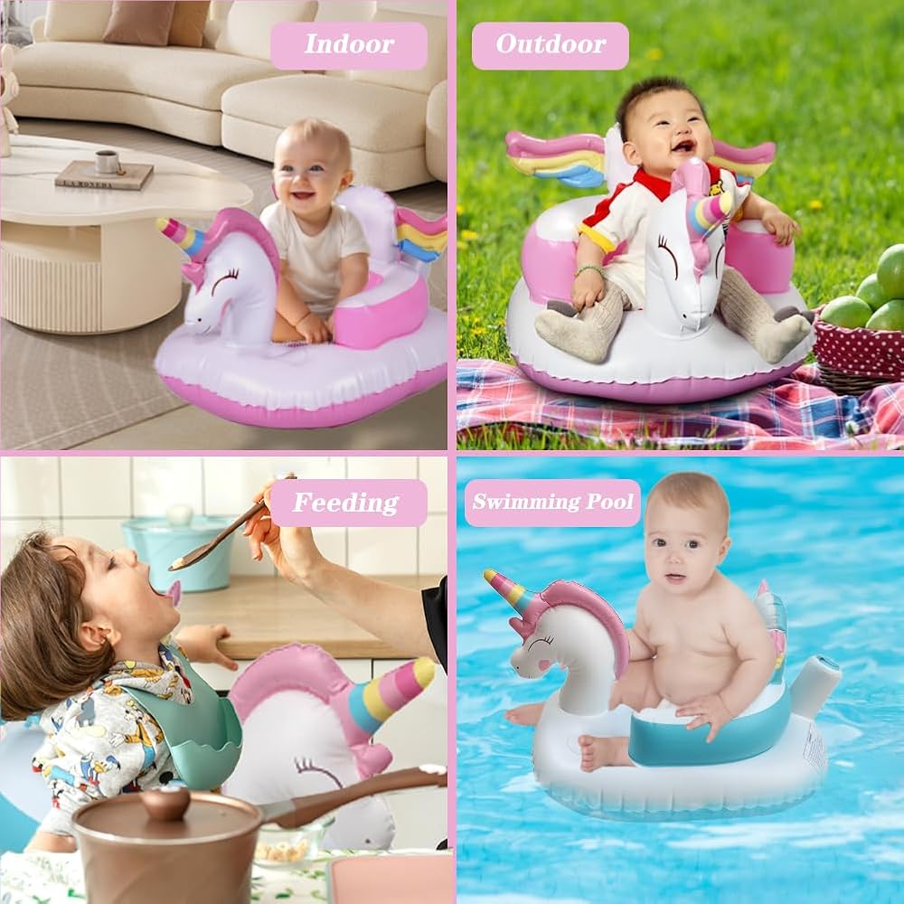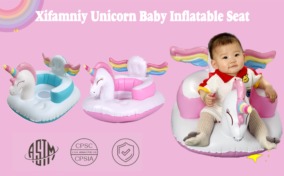 ❤[تصميم أحادي القرن] يتميز مقعد الطفل القابل للنفخ بتصميم فريد من نوعه على شكل أحادي القرن، وهو لطيف جدًا وجذاب للأطفال. يتميز الكرسي القابل للنفخ للأطفال بألوان زاهية وأنماط جميلة يمكن أن تجذب انتباه الطفل وتعزز التطور البصري للطفل