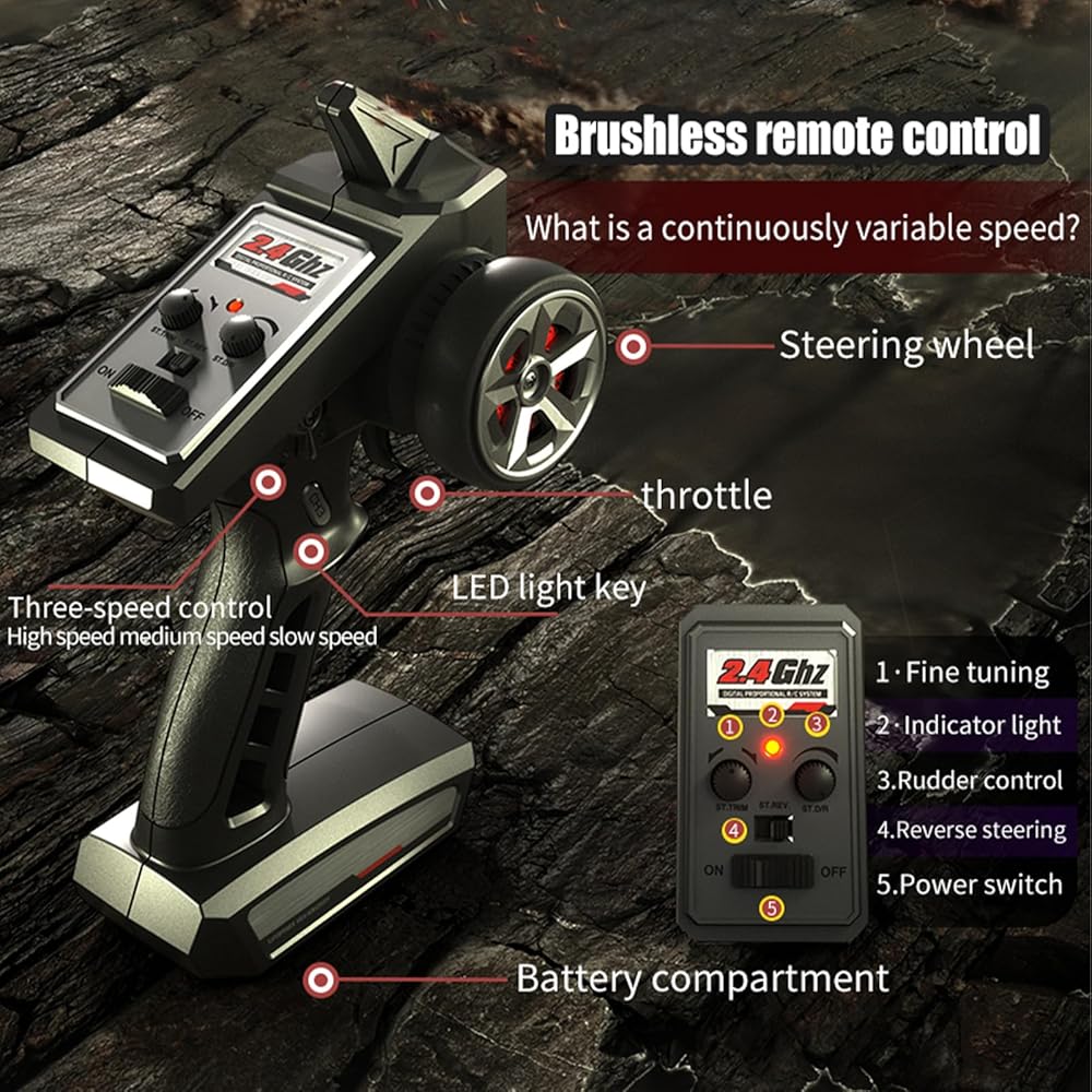 【سريعة وبرية】 تضمن سيارة RC هذه تجربة قيادة أصلية سهلة وممتعة مع سرعات أسرع ومتانة أسطورية وتصميم منخفض الصيانة. يوفر المحرك القوي 390 والتحكم الإلكتروني في السرعة عالي التيار تسارعًا سريعًا للغاية وأداءً مذهلاً يصل إلى 50 كم / ساعة. على الطرق الممهدة أو الوعرة، يحافظ الهيكل الأنيق على انخفاض الوزن من أجل التعامل الفوري والسرعة الفائقة.