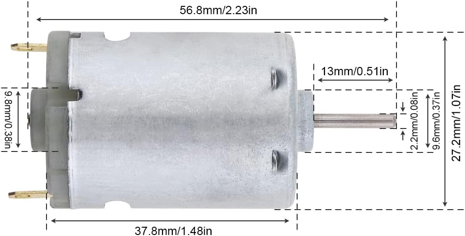 • Model Number: RS-385-2270; Voltage: 12 - 24V; No load Speed: 9800-15000 rpm; Output Power: 6.13W; Type: Micro Motor; Material: Metal