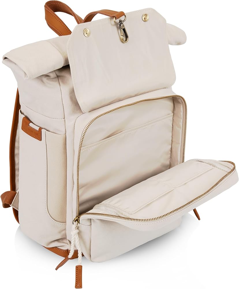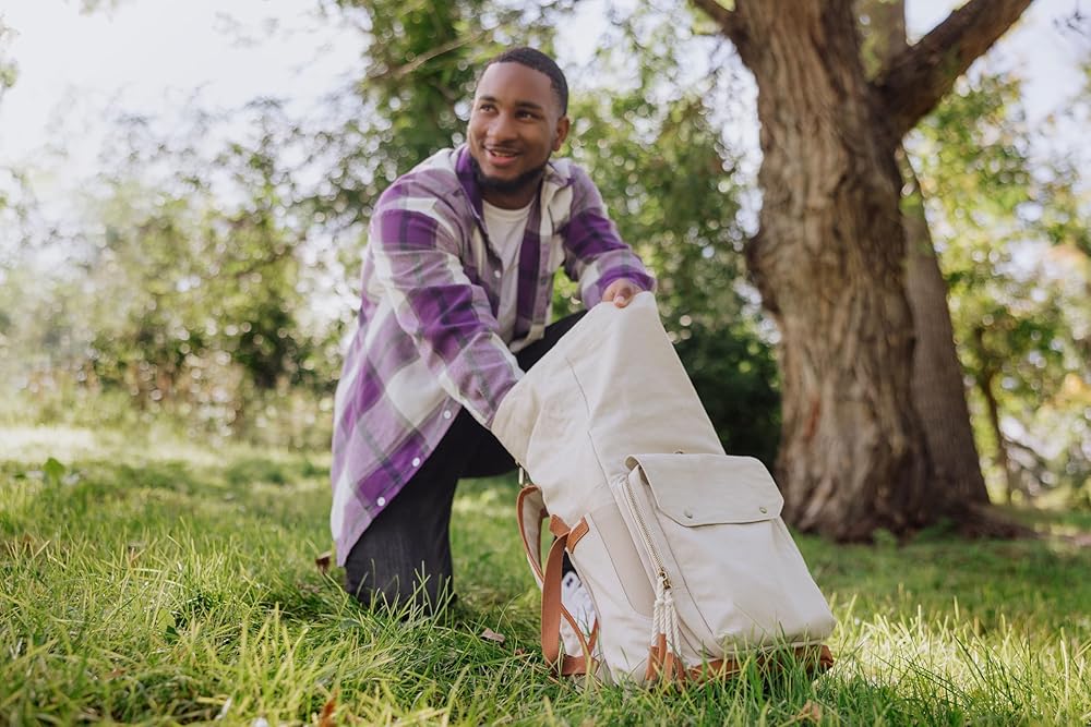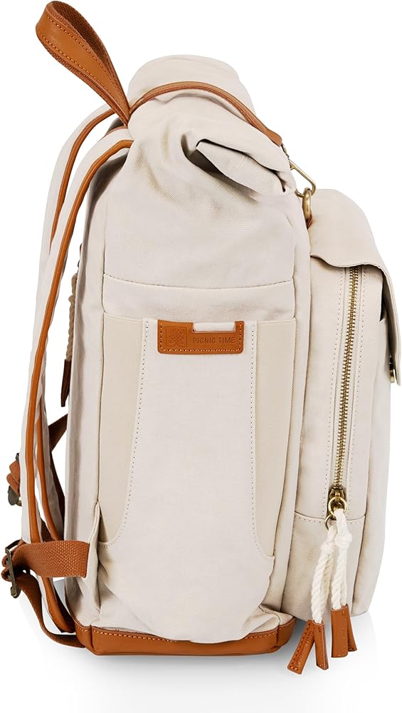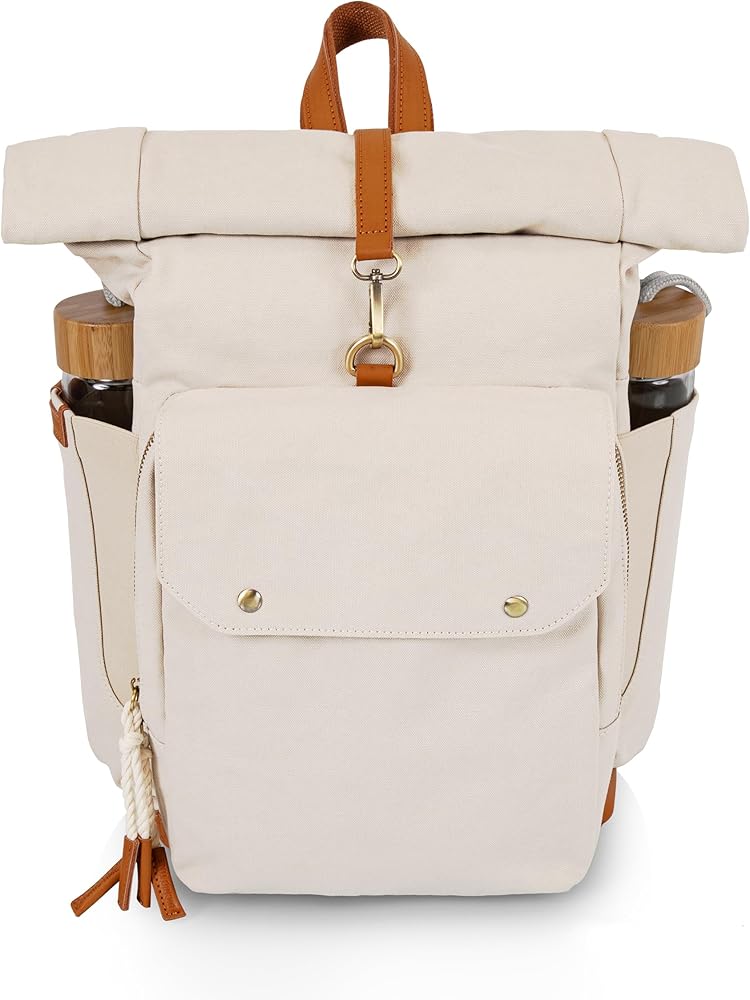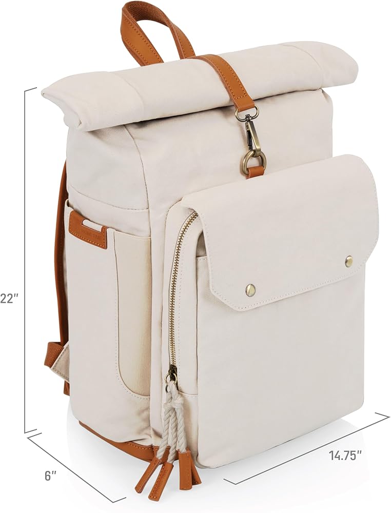 FASHIONABLE COOLER - The Carmel Roll Top Picnic Backpack Cooler brings together a certified recycled Cotton canvas exterior with waterproof, insulated, eco-friendly interior to create one stylish and functional package