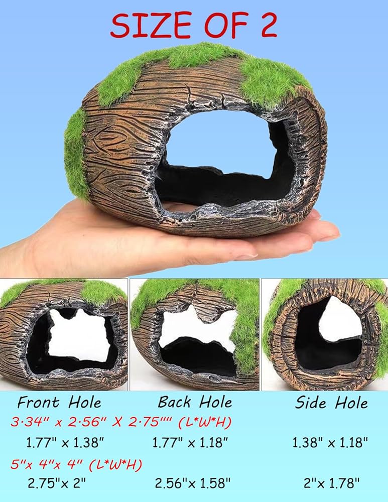 【Light Size】This Log Resin Hollow Tree Trunk Ornament dimension is 3.34"x 2.56× 2.75"(L*w*H), perfect for use in small and medium size fish tank. Can be clean and wash it before use directly