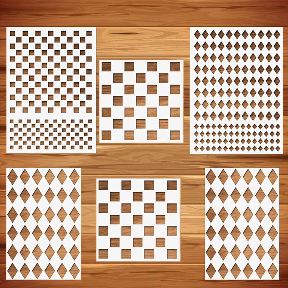 • Package Included: 3pcs Checkerboard Stencils Diamonds Stencils and 3pcs harlequin stencils.