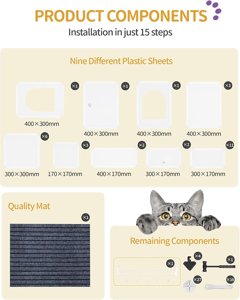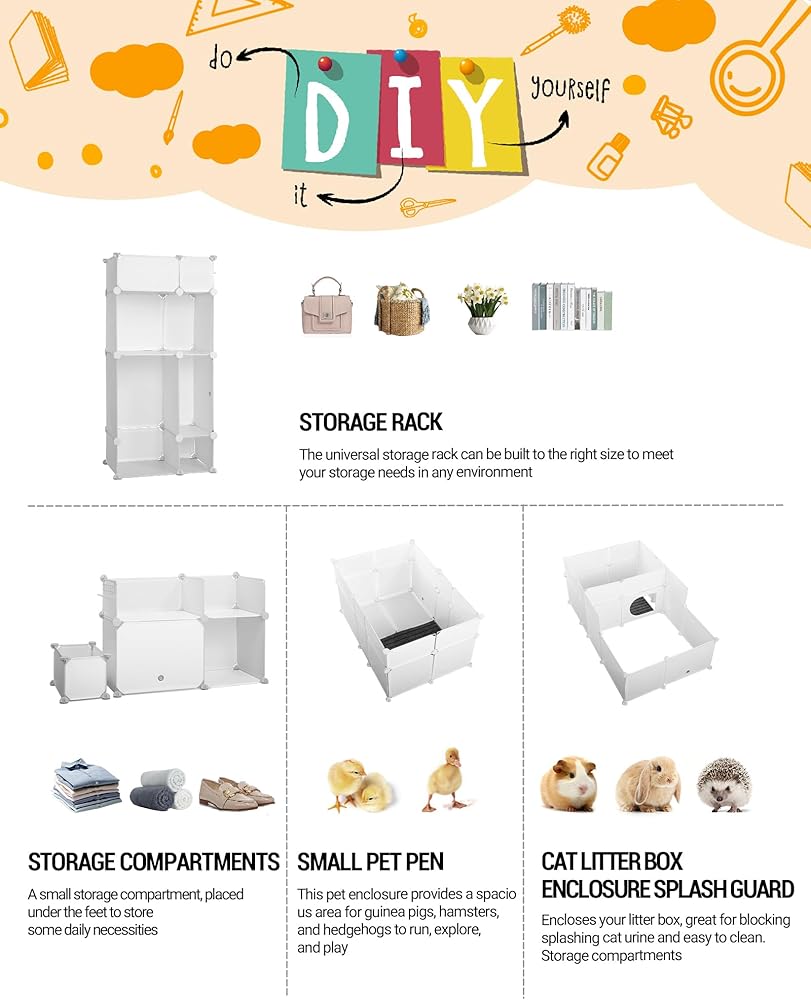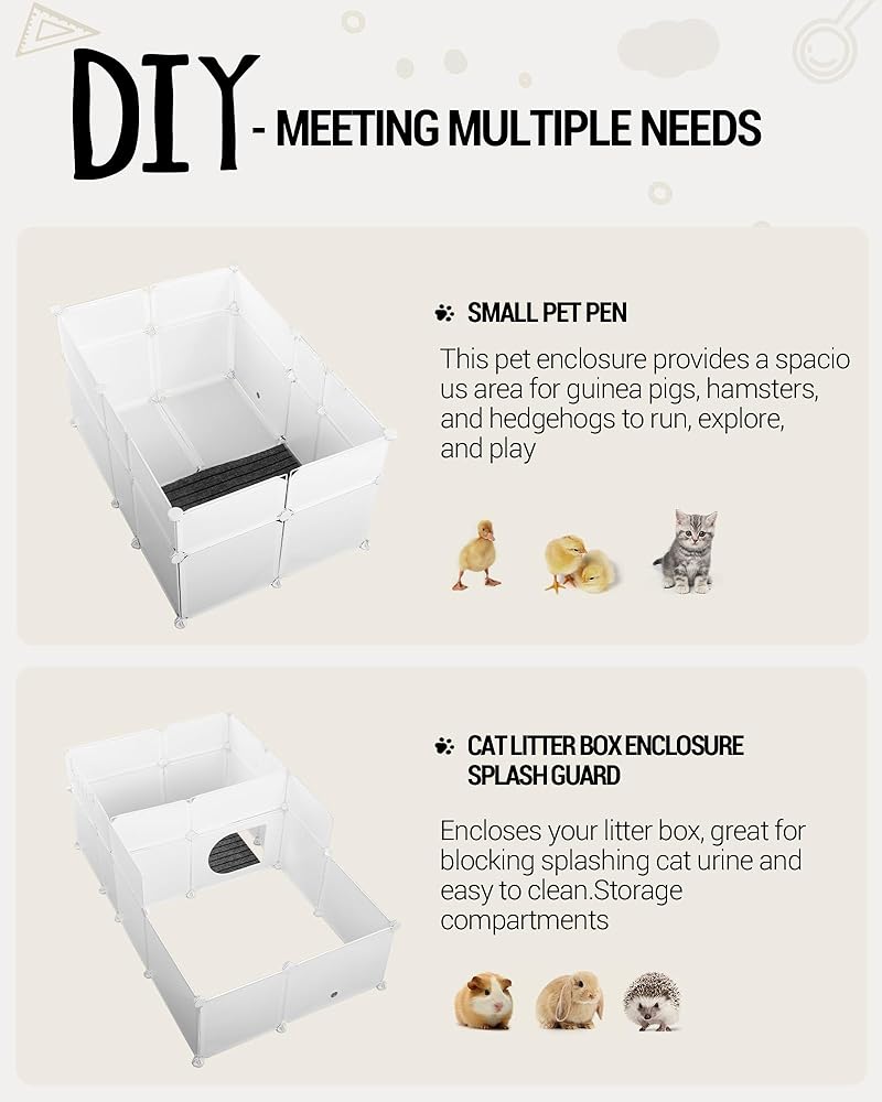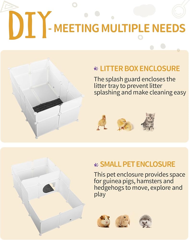 • 【اصنعها بنفسك حسب احتياجاتك】 وفقًا لاحتياجات المشهد العائلي، يمكن أن تكون منتجات DIY أسوارًا كبيرة الحجم، أو صناديق مختلفة لفضلات القطط، أو أعشاش القطط. يمكن أيضًا إزالة موضع الفتح.