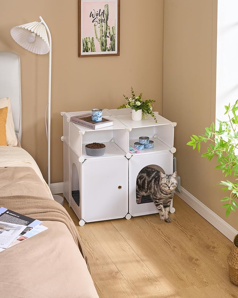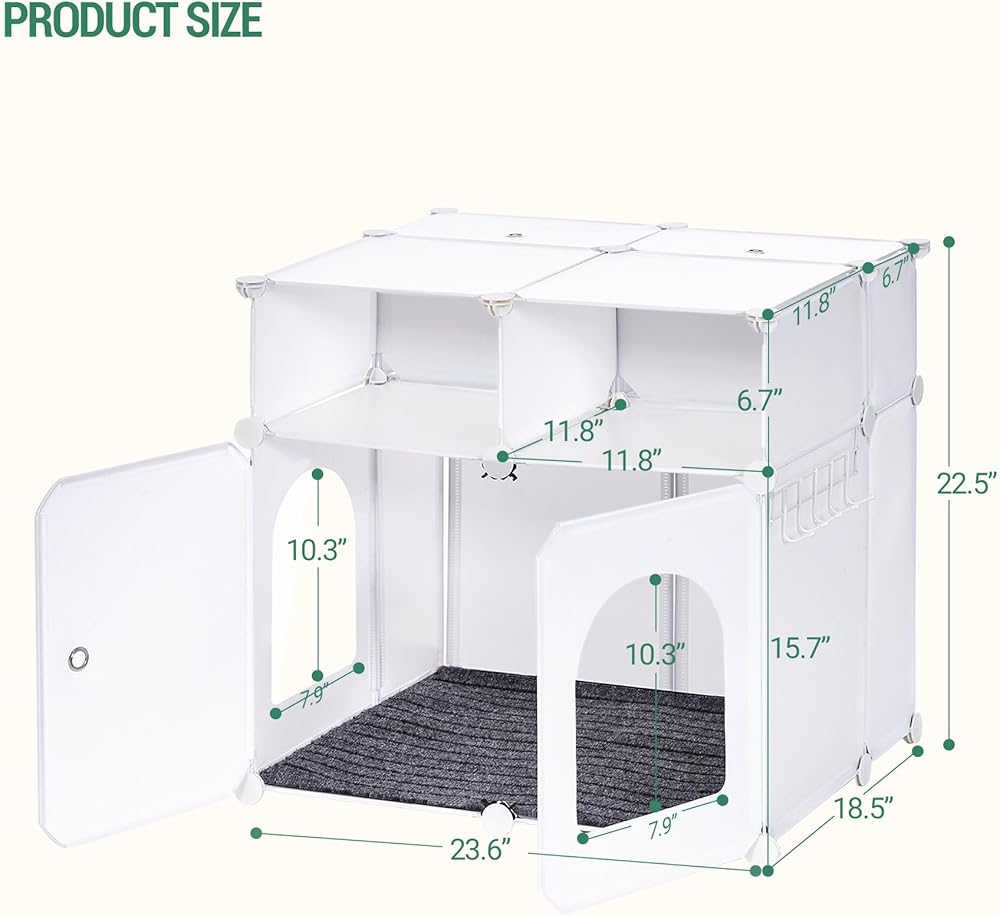 • 【يناسب صناديق الفضلات الأكبر حجمًا】حجم كل صندوق للقطط هو العرض 23.7 × العمق 18.5 × الارتفاع 22.5 بوصة، وهو مناسب لمعظم صناديق فضلات القطط. يمكن أن تكون خزانة صندوق فضلات القطط المثالية بمثابة مرحاض للقطط أو استكمال منزل القطط، مما يمنح القطط منزلًا مريحًا؛ تكمل الأبواب الخارجية والأبواب المقوسة الأنيقة ديكور منزلك.