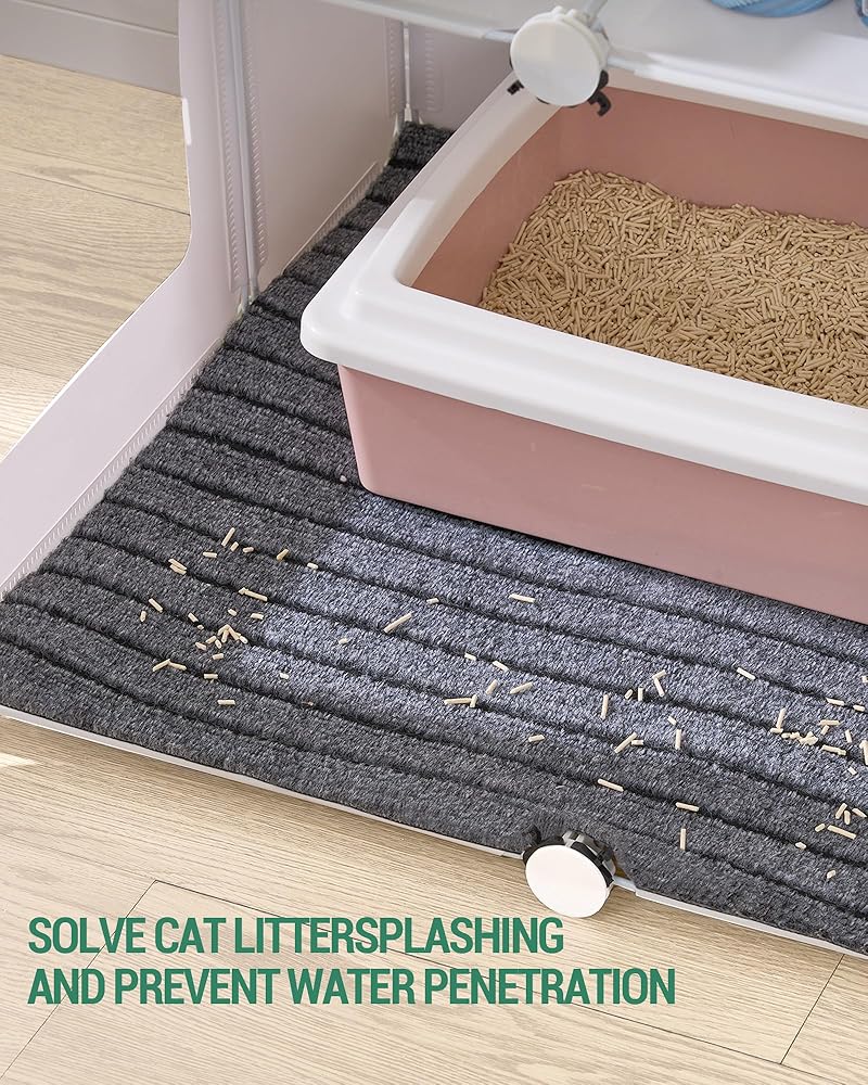 • 【مقاوم للماء ومضاد للرذاذ】 بالإضافة إلى اللوحة السفلية للصندوق، يأتي صندوق فضلات القطط هذا أيضًا مع حصيرة أرضية مقاومة للماء ومانعة للتسرب. لن يتسرب فضلات القطط وبول القطط إلى الأرض ولن يسبب ضررًا للأرضية، وسهل التنظيف للغاية.