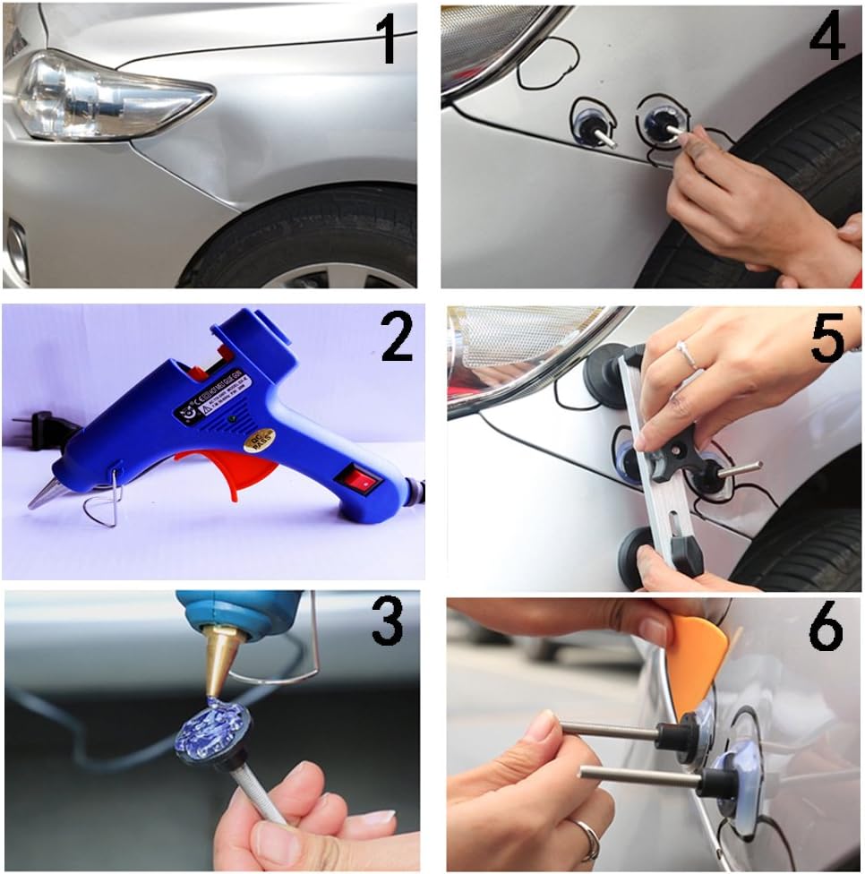 (Search ”Dent Removal Tool” on You丨Tube to watch how to use the tool kit & Product Picture 3 in the listing shows the process)