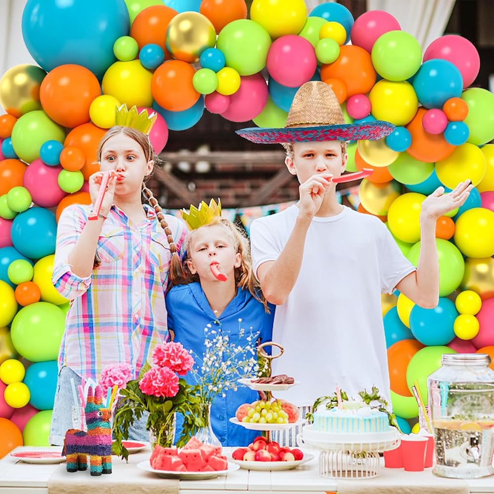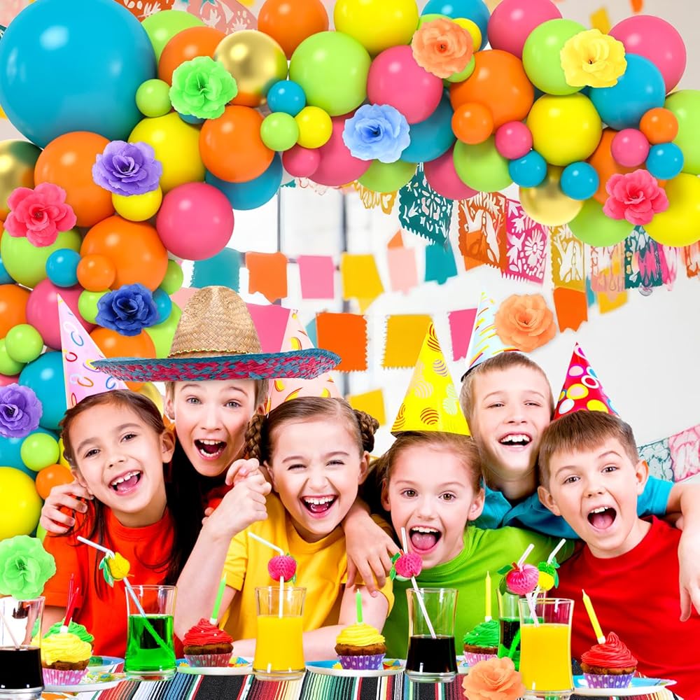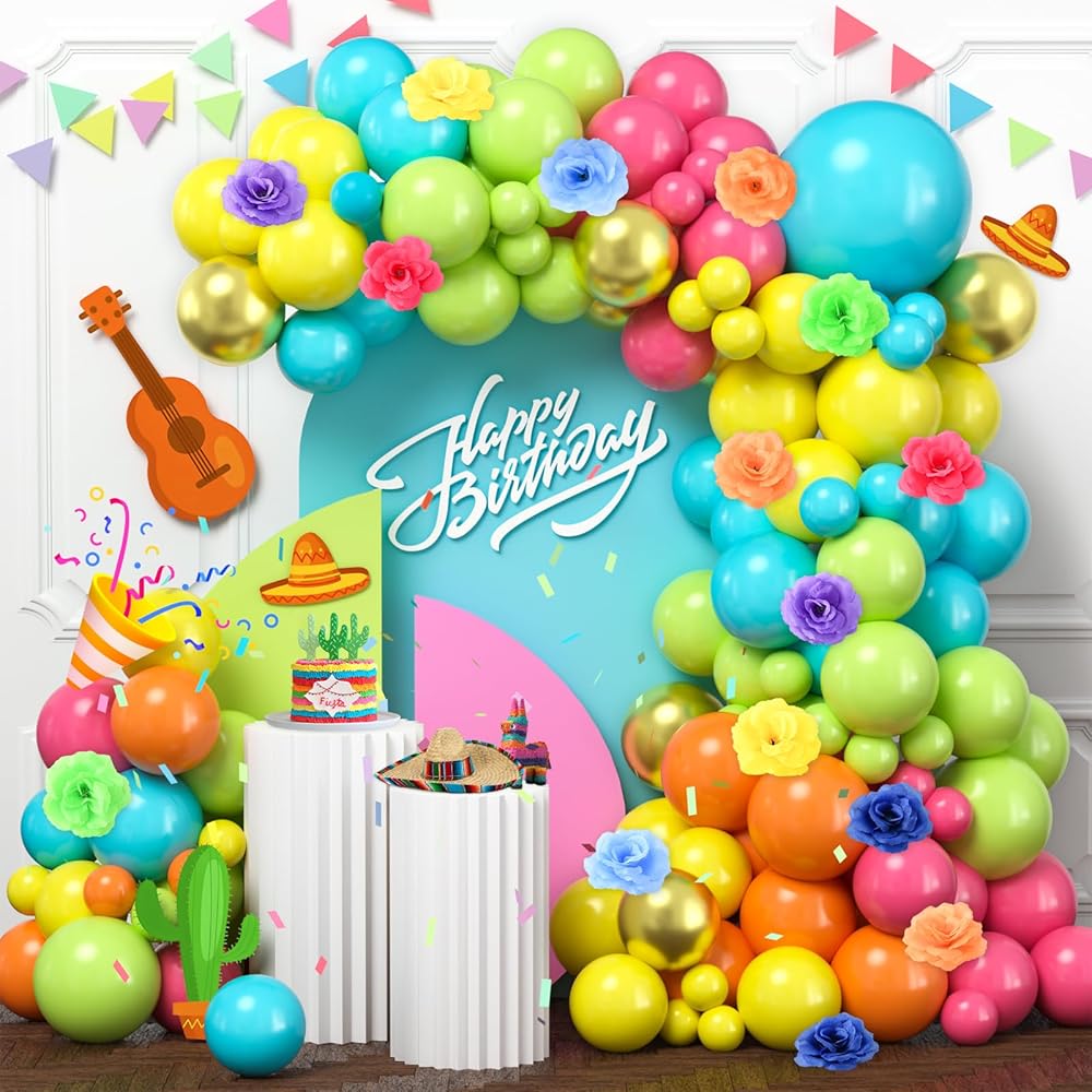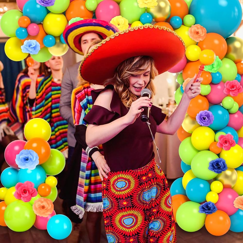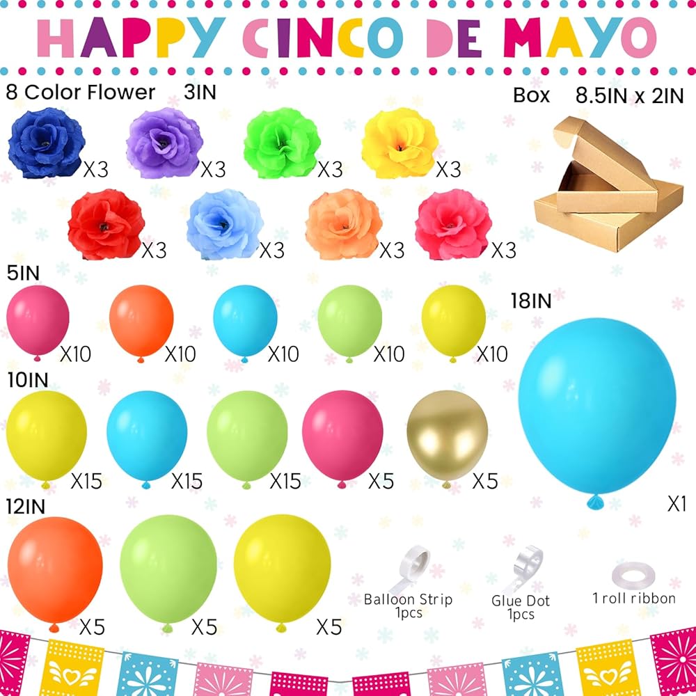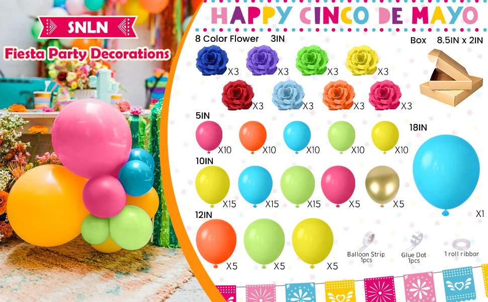 SNLN 148 قطعة من ديكورات الحفلات المكسيكية، لوازم أعياد الميلاد، بالونات العيد، مجموعة قوس إكليل مع زهرة وهمية، أطفال في سن المراهقة البالغين المكسيكيين ديكورات الحفلات سينكو دي مايو فييستا