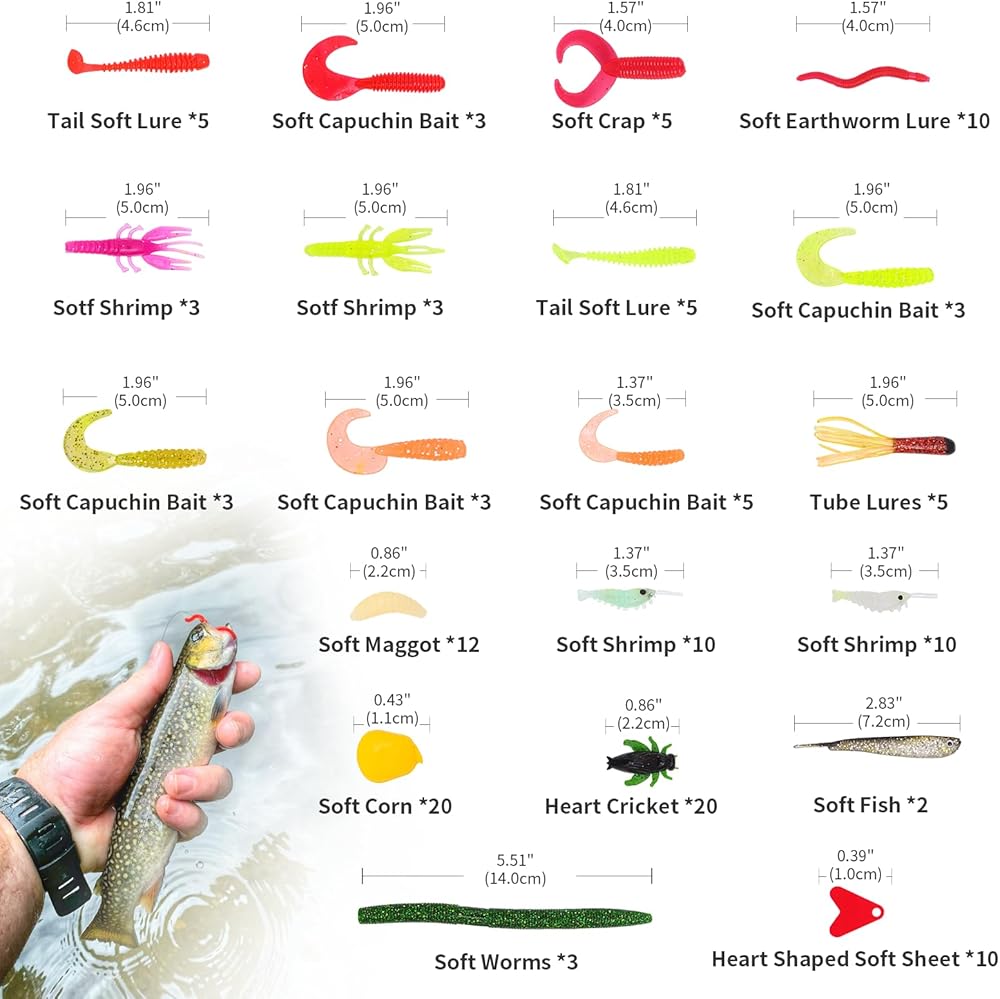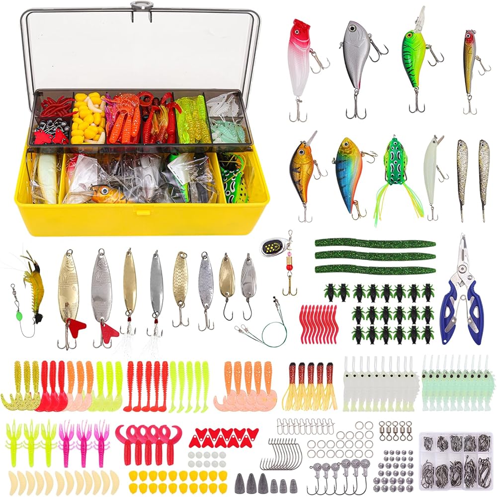 【How Many Lures】More than 350 pcs in the fishing tackle box. Include crankbaits, plastic worms, catfish hooks, Jigs, Versatile Fishing Pliers,and more. You will know the lures' names from our pictures.