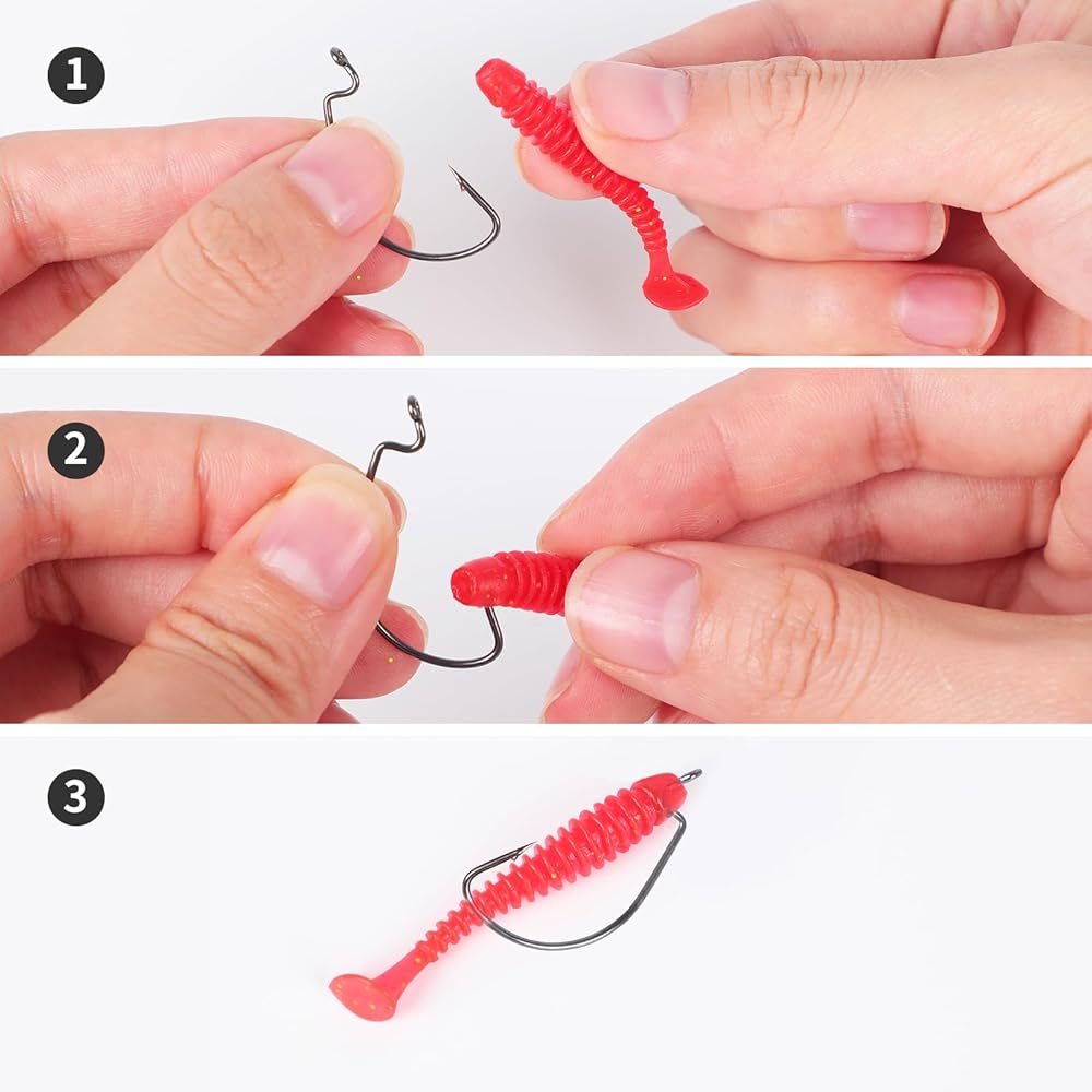 【How to Use】Use weedless hooks to hook plastic shrimp,plastic frogs, and more. You can learn from our pictures or video.