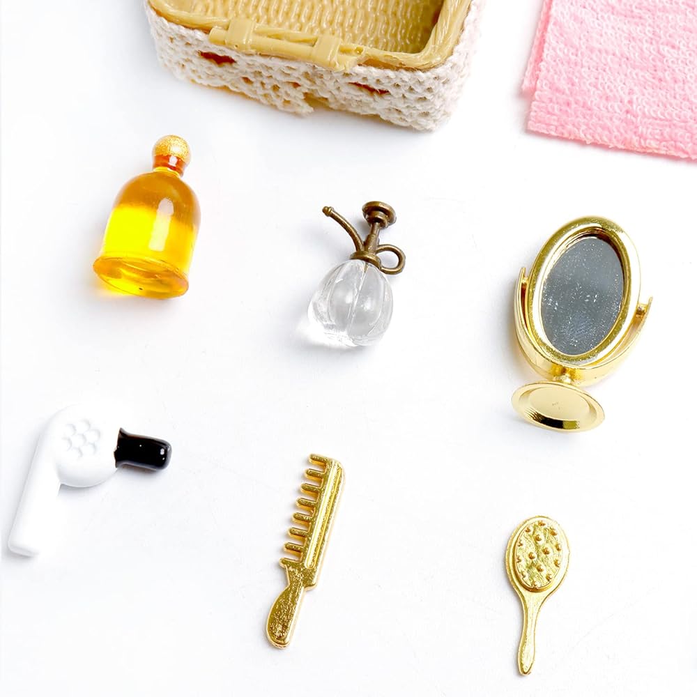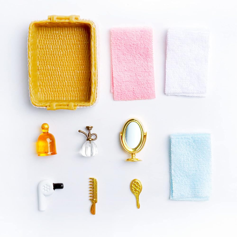This miniature bathroom set is made in a scale of 1:12. Mini house bathroom supplies, nice decor for your miniature house, more interesting and realistic.