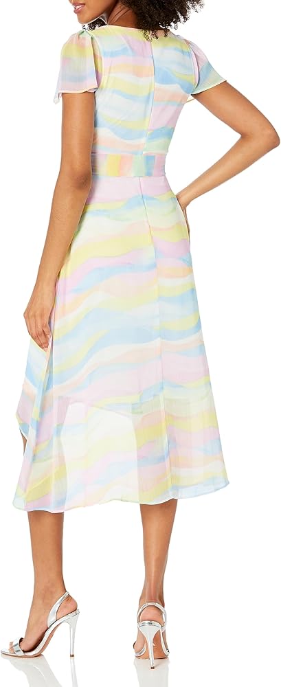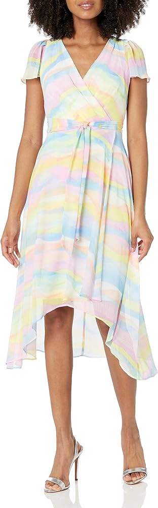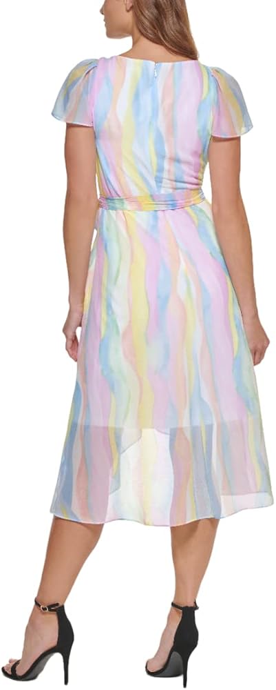 This DKNY Women's Dresses SHORT SLEEVE is a FAUX WRAP MIDI ESSENTITAL