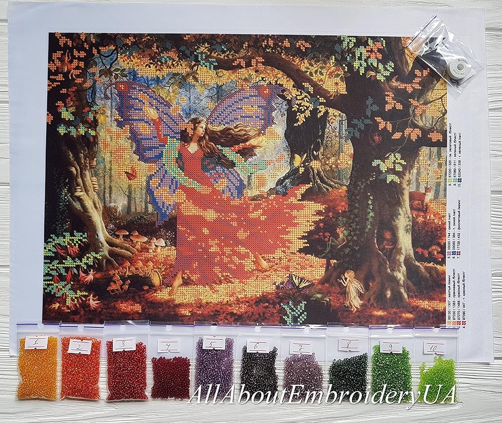 Included: Fabric with printed background, Czech beads Presiosa Ornela, Embroidery thread and needle, Full insrtructions.