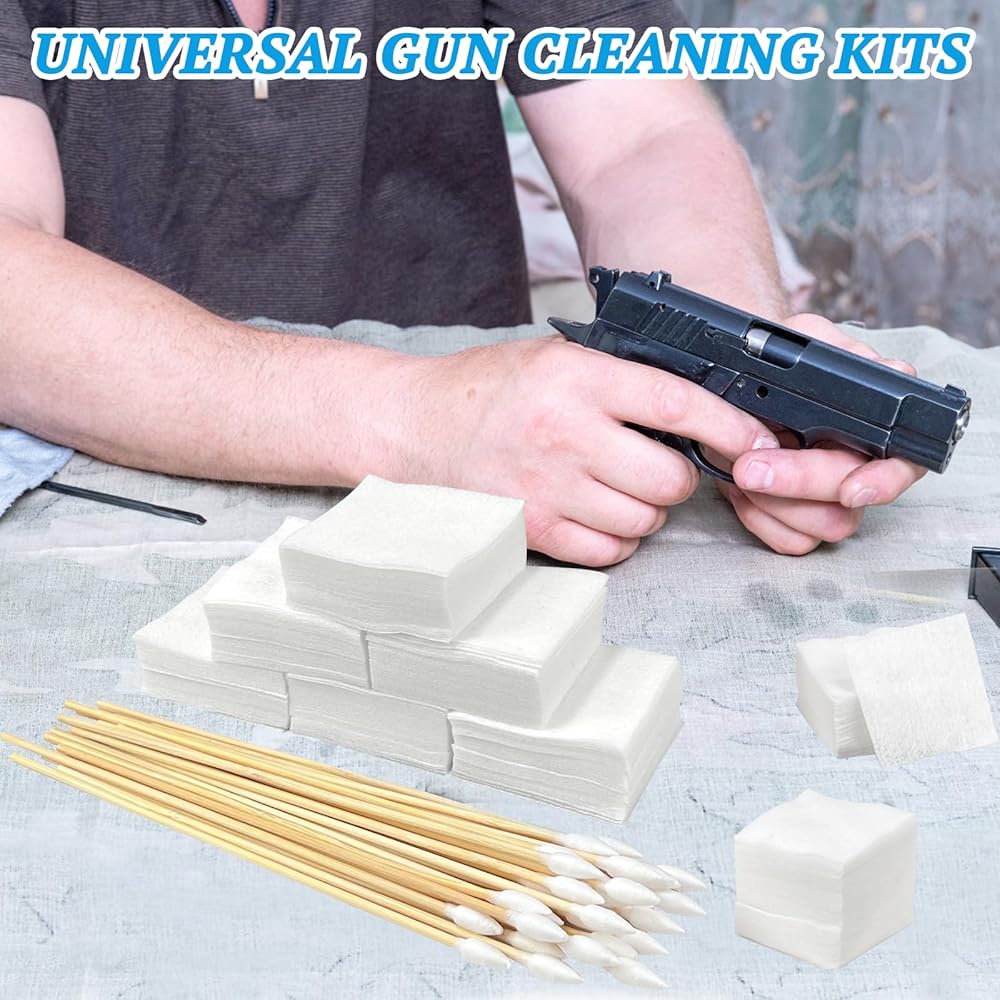 • مجموعة تنظيف المسدس: بما في ذلك 300 قطعة من رقعات التنظيف و200 قطعة من مسحات القطن المدببة، توفر مجموعة تنظيف المسدس هذه جميع اللوازم والملحقات الأساسية، وحافظ على أسلحتك النارية في حالة ممتازة مع مجموعتنا.