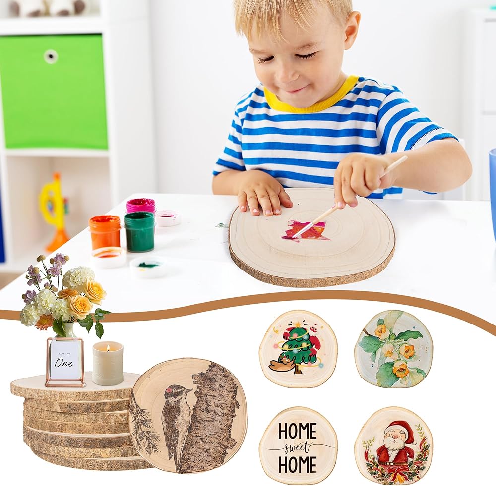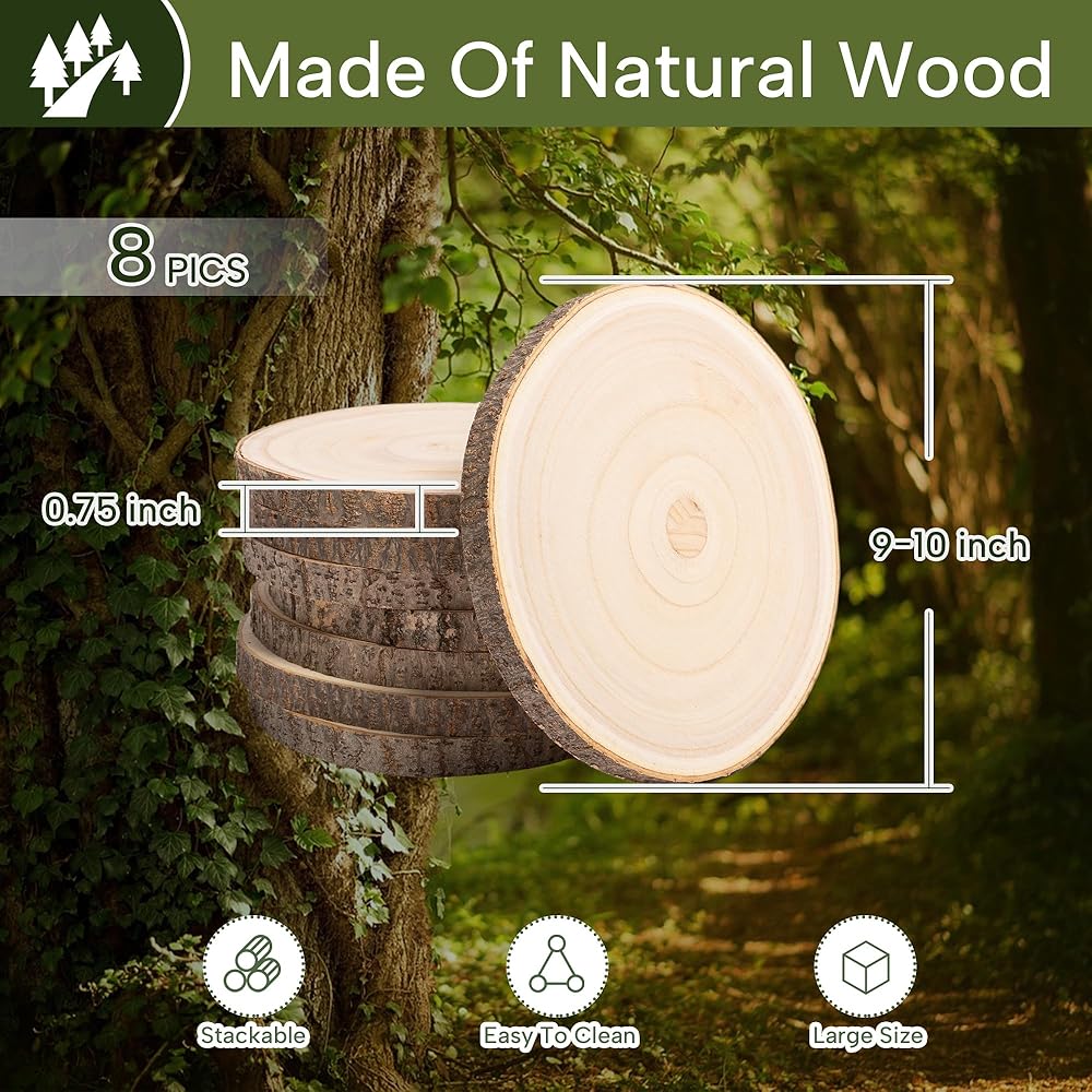 ✅【أحجام مثالية】: شريحة خشبية كبيرة الحجم من 9 إلى 10 بوصة مصنوعة من الخشب الطبيعي وهي قوية ومتينة لاستخدامها في أي مشروع خشبي. سمك شريحة الخشب 0.75 بوصة. تحتوي العبوة على 8 قطع من شرائح الخشب لتلبية احتياجاتك اليومية المتنوعة.