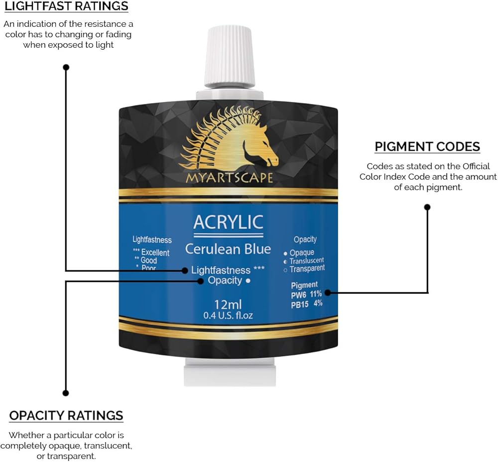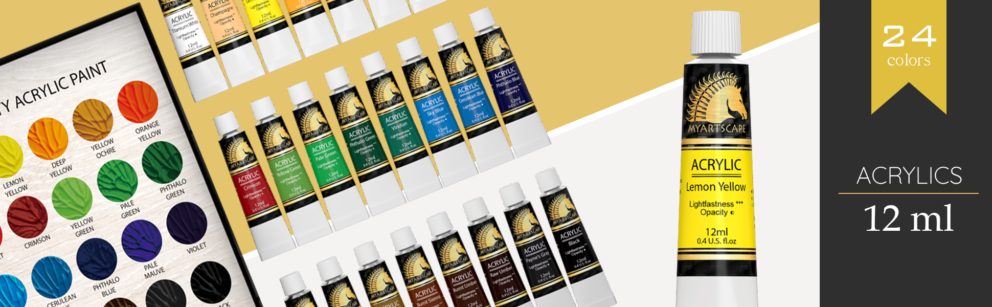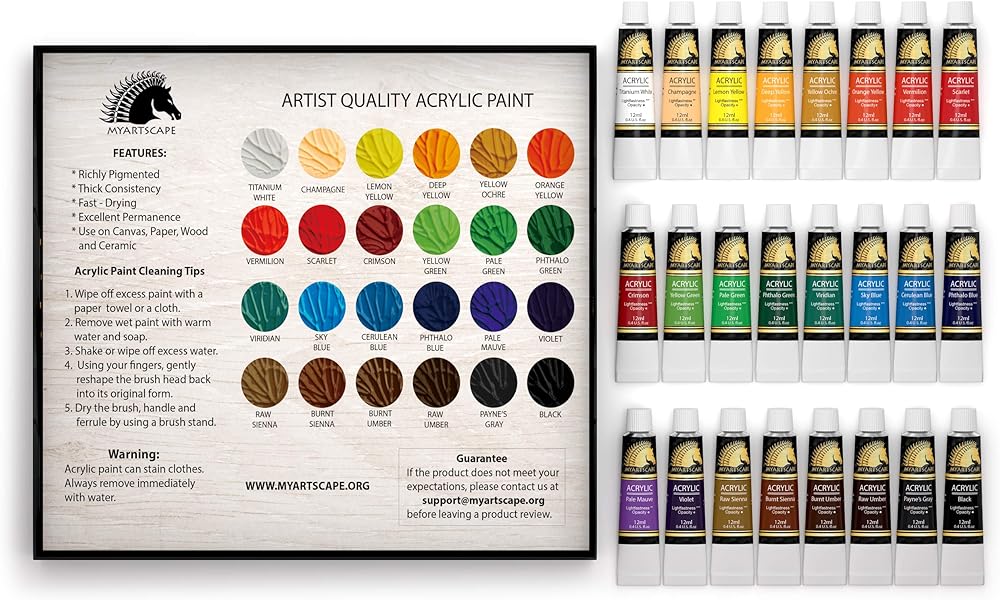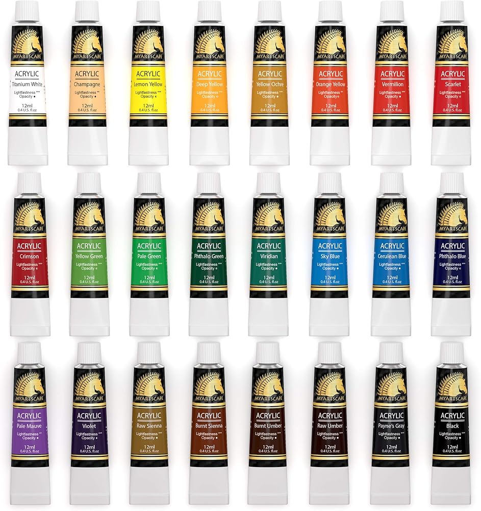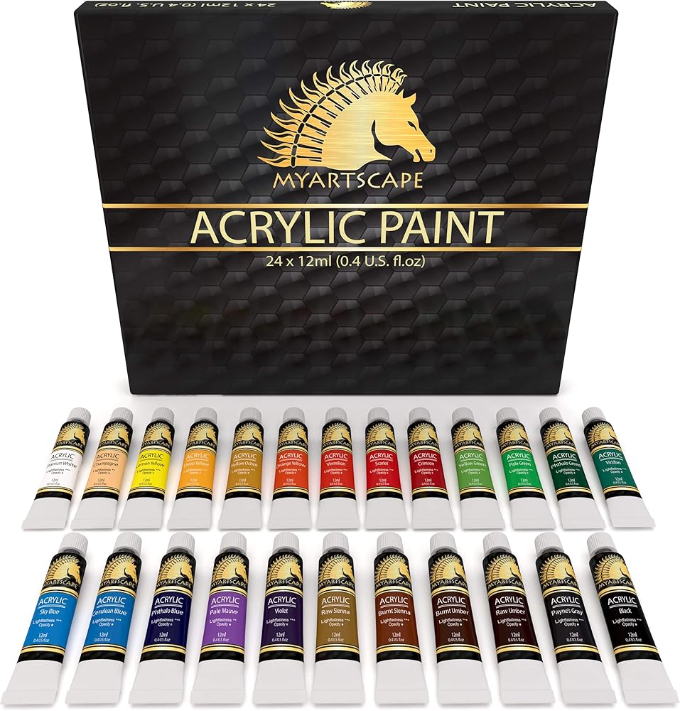 مجموعة طلاء الأكريليك من MyArtscape - أنابيب 24 × 12 مل - خفيفة الوزن - جسم ثقيل - تدوم طويلاً - ألوان نابضة بالحياة - لوازم فنية احترافية - دهانات بجودة فنية