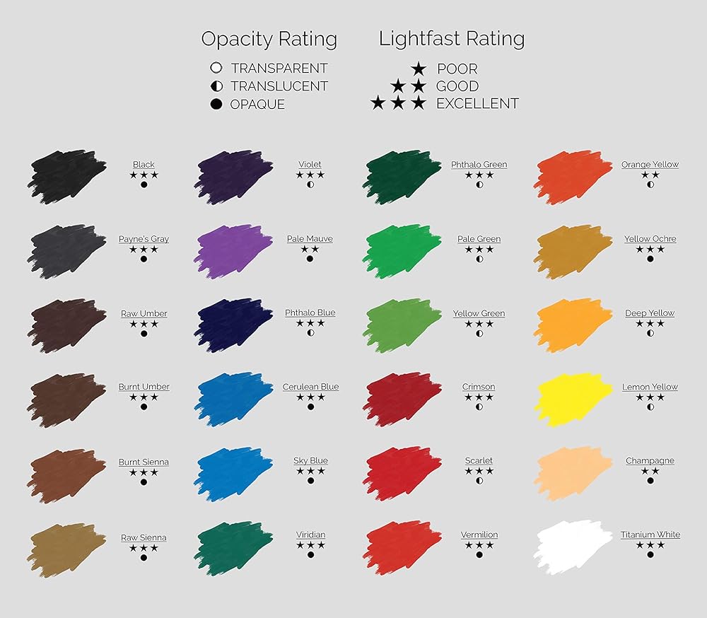 • ألوان نابضة بالحياة تدوم طويلاً: ضع طلاء فنان أكريليك حيوي عالي الصبغة يبقى على هذا النحو