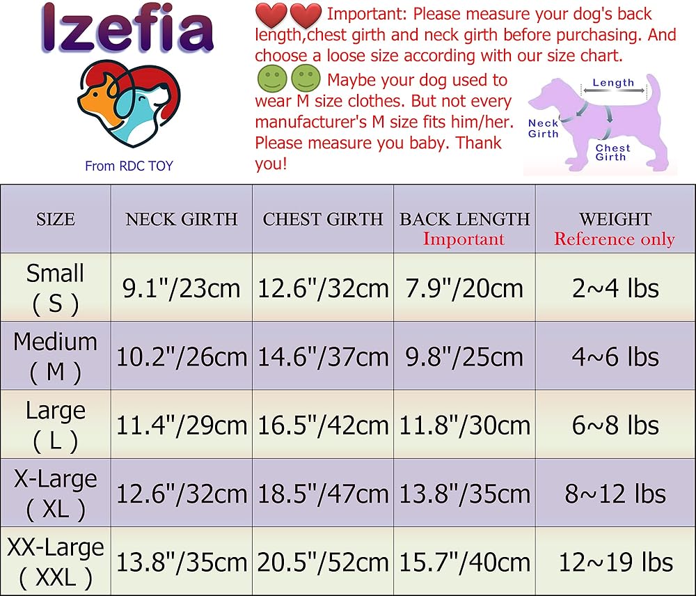 ★ Various choice of sizes, mainly for small dogs, puppy, not for large dogs. Please don't choose size according to a usual size, but to measure your pet's neck girth, chest girth and back length (especially the back length) . And then choose a size larger according to our size chart. Because the clothes are thicker, the inner space is smaller.