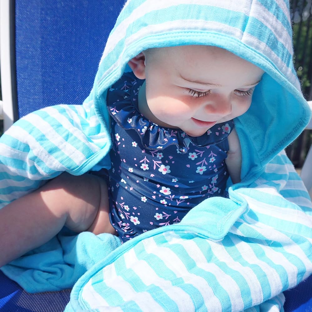The Muslin Hooded Towel keeps your baby or toddler warm and dry after bath, beach, or pool time with thick, thirsty, and super soft layers of organic cotton muslin and terry. The hand pockets on each side make it easy for your toddler to dry off independently. Organic cotton is formaldehyde-free with azo-free dyes, so only the safest materials touch your child's delicate skin. Available as a 2-pack.