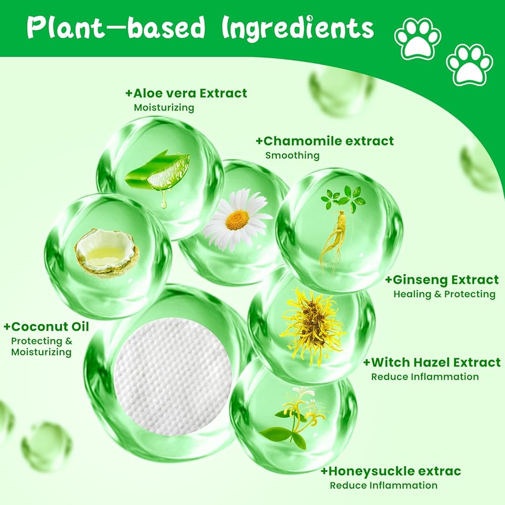 • 【تأثير مهدئ】تحتوي مناديل الأذن للقطط من تينيووي على مكونات مثل مستخلص الصبار ومستخلص البابونج ومستخلص زهر العسل وحمض الستريك التي توفر تأثيرًا مهدئًا، مما يساعد على تهدئة أي إزعاج أو تهيج قد ينشأ في آذان الكلب.