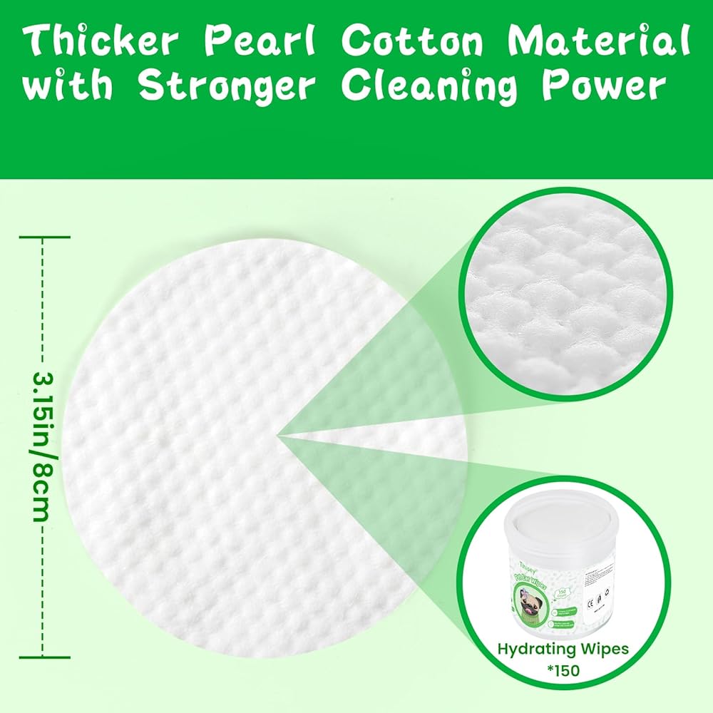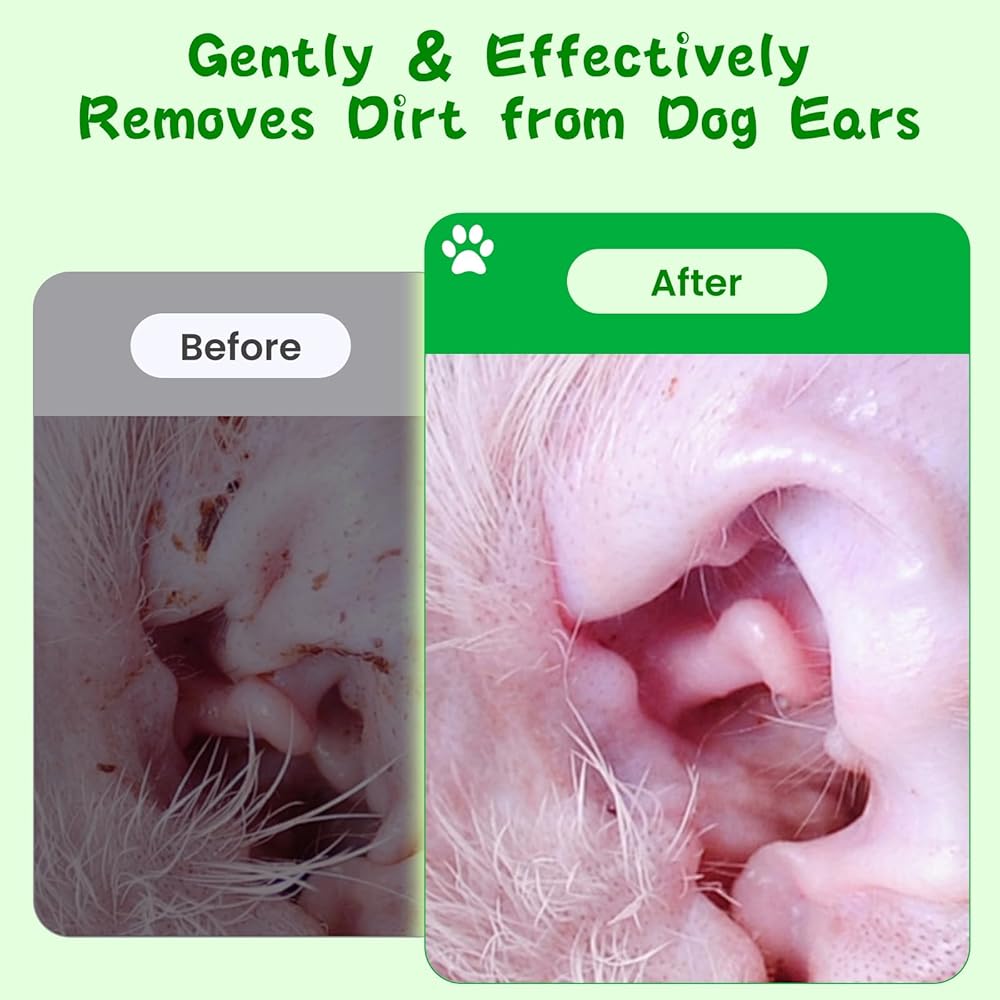 مناديل مبللة لأذن الكلاب للكلاب (150 قطعة - كبيرة جدًا) | منظف ​​أذن القطط والكلاب ذو الأصل النباتي، محلول تنظيف لإزالة الأوساخ وشمع الأذن، وتخفيف الحكة وهز الرأس والالتهابات