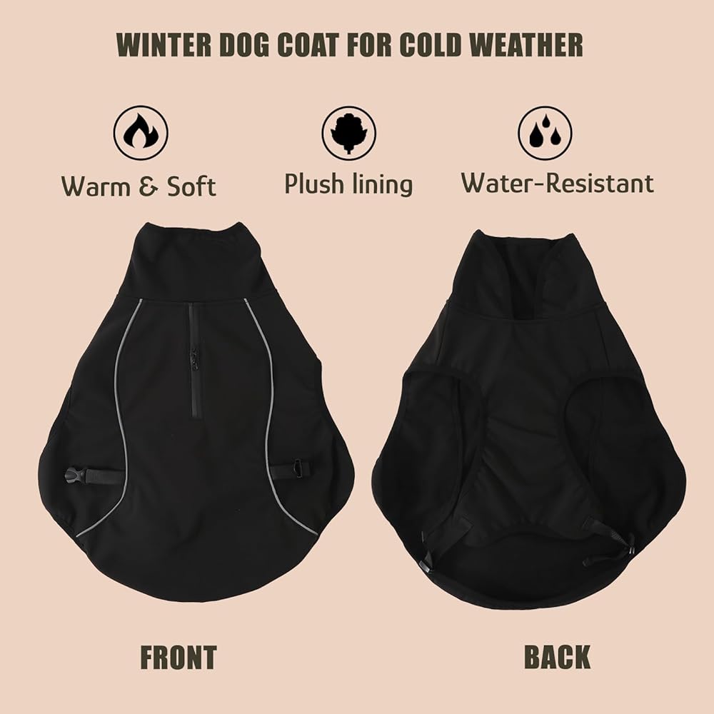 مادة دافئة: معطف الشتاء للكلاب مصنوع بنسبة 100% من البوليستر المقاوم للماء ومبطن بالصوف الحراري، مما يحافظ على دفء حيوانك الأليف في الشتاء والثلوج والمطر.