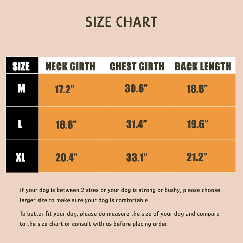 نصائح لطيفة: لكي يتمكن كلبك من ارتداء هذه السترة بشكل أكثر راحة، يرجى قياس ظهر الكلب وصدره ورقبته قبل الشراء.