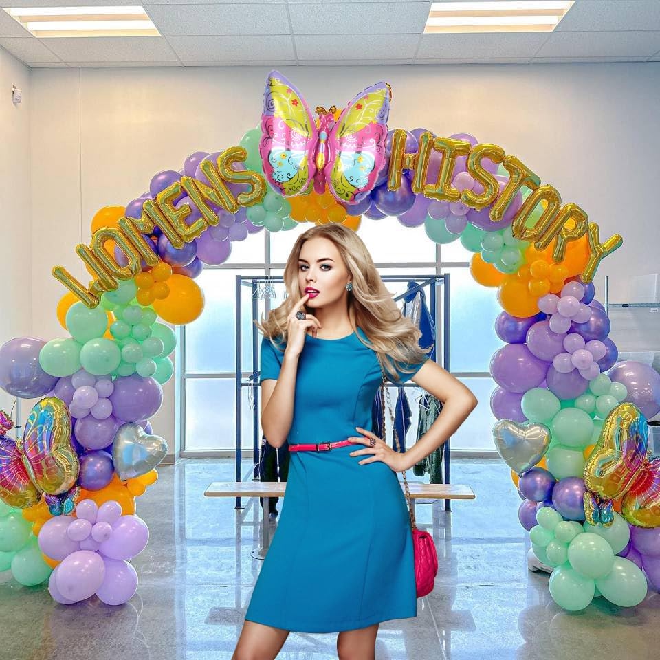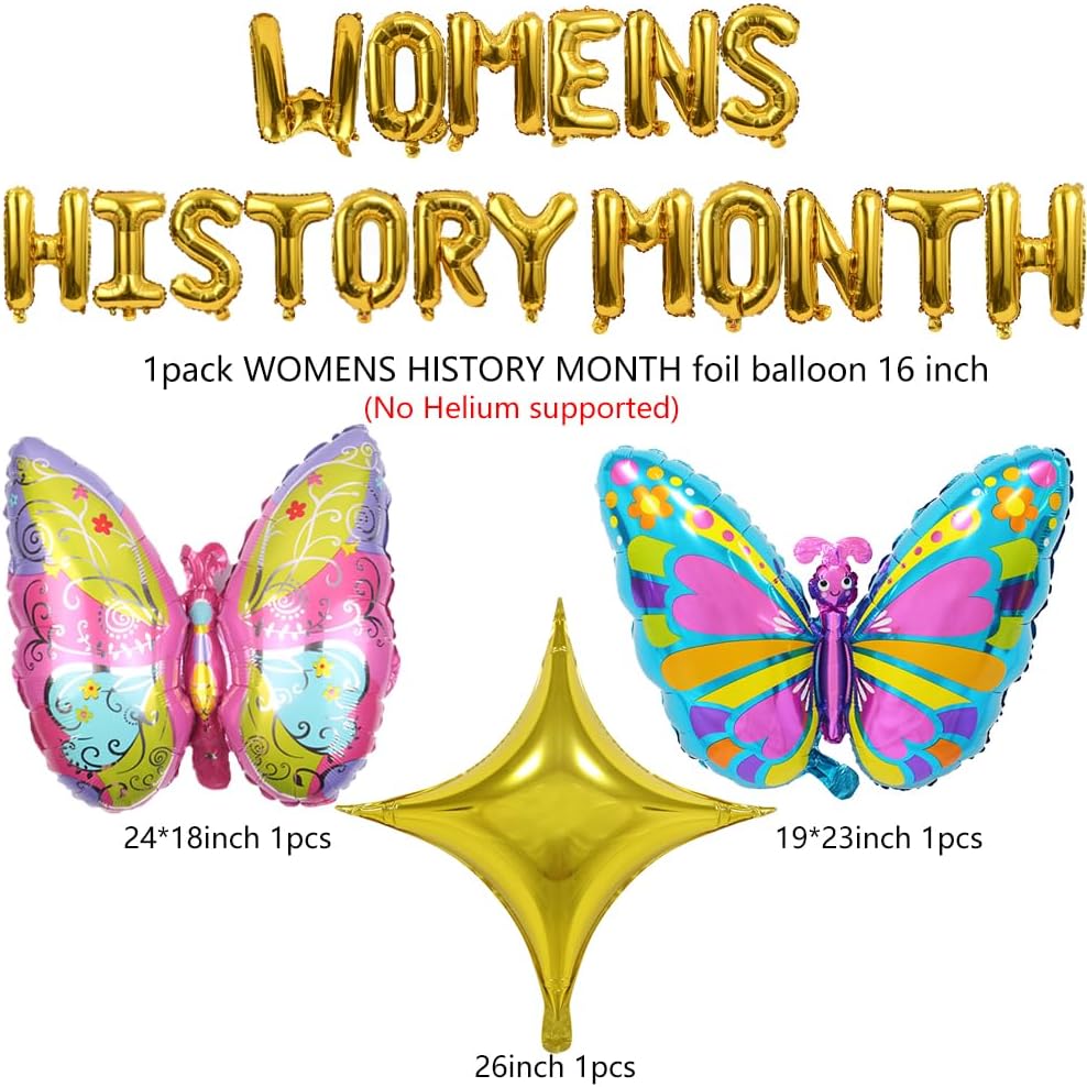 This womens history month decorations kit with 139 pcs womens history month balloon garland arch Womens history month foil balloon banner and butterfly balloon for national women's day birthday party decor.