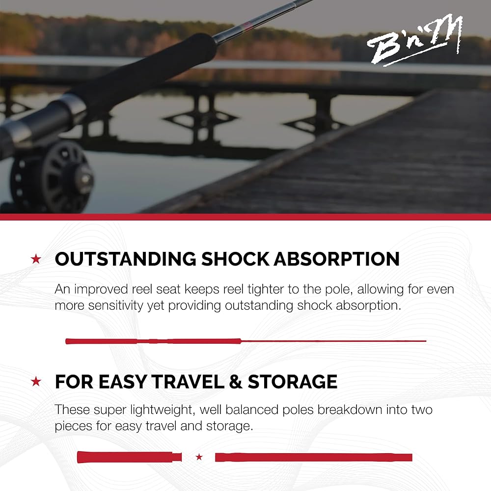 A bottom reel seat for perfect balance, a "touch system". The touch system actually provides a better grip and fit to your hands. 100% Ultra-light graphite.