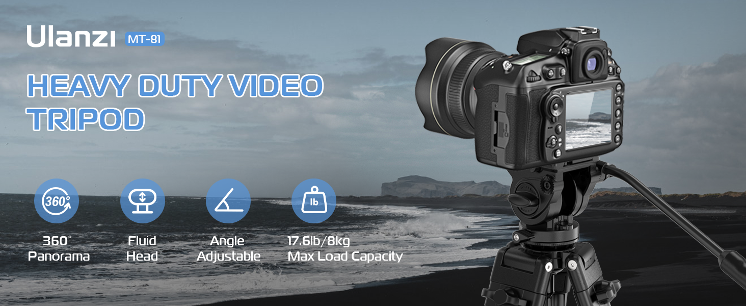 ULANZI MT-81 حامل ثلاثي احترافي للفيديو شديد التحمل مع رأس سائل، مقلاة 360 درجة و-75 درجة/+90 درجة رأس إمالة، موزع متوسط ​​المستوى، ساق أنبوبية مزدوجة من الألومنيوم لكاميرات الفيديو DSLR، 61 بوصة أقصى تحميل 17.6 رطل