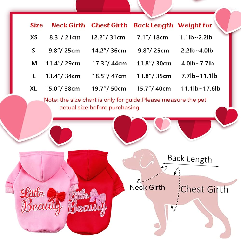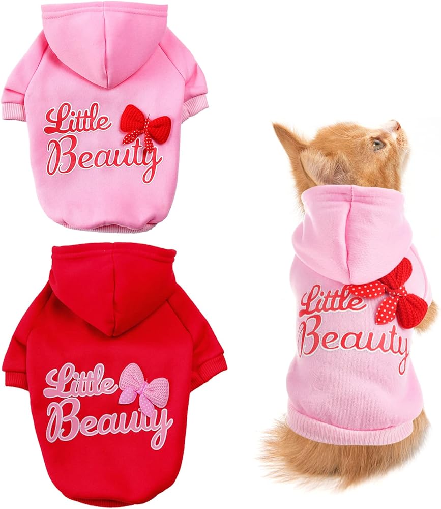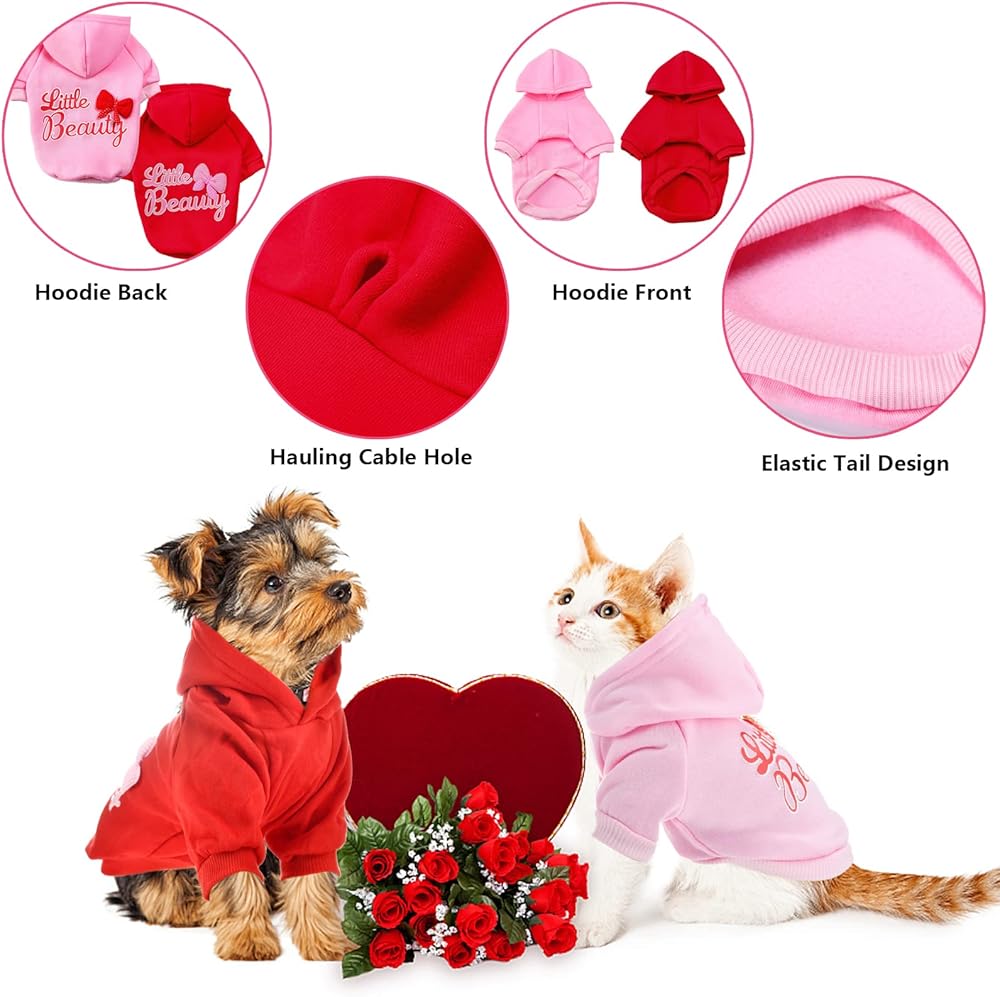 【قطعتان في عبوة واحدة】سوف تحصل على قطعتين في عبوة واحدة، باللون الوردي والأحمر. تم تصميم كل من هذه السترة ذات القلنسوة للكلاب على طراز المهرجانات. نمط جميل قليلاً وقوس مليء بأجواء عيد الحب وعيد الميلاد. هذه السترات المخصصة للحيوانات الأليفة مناسبة لكل من الكلاب والقطط من الأولاد والبنات. ستكون سترات الجرو الجميلة هدية دافئة لكلبك أو قطتك في العطلة.