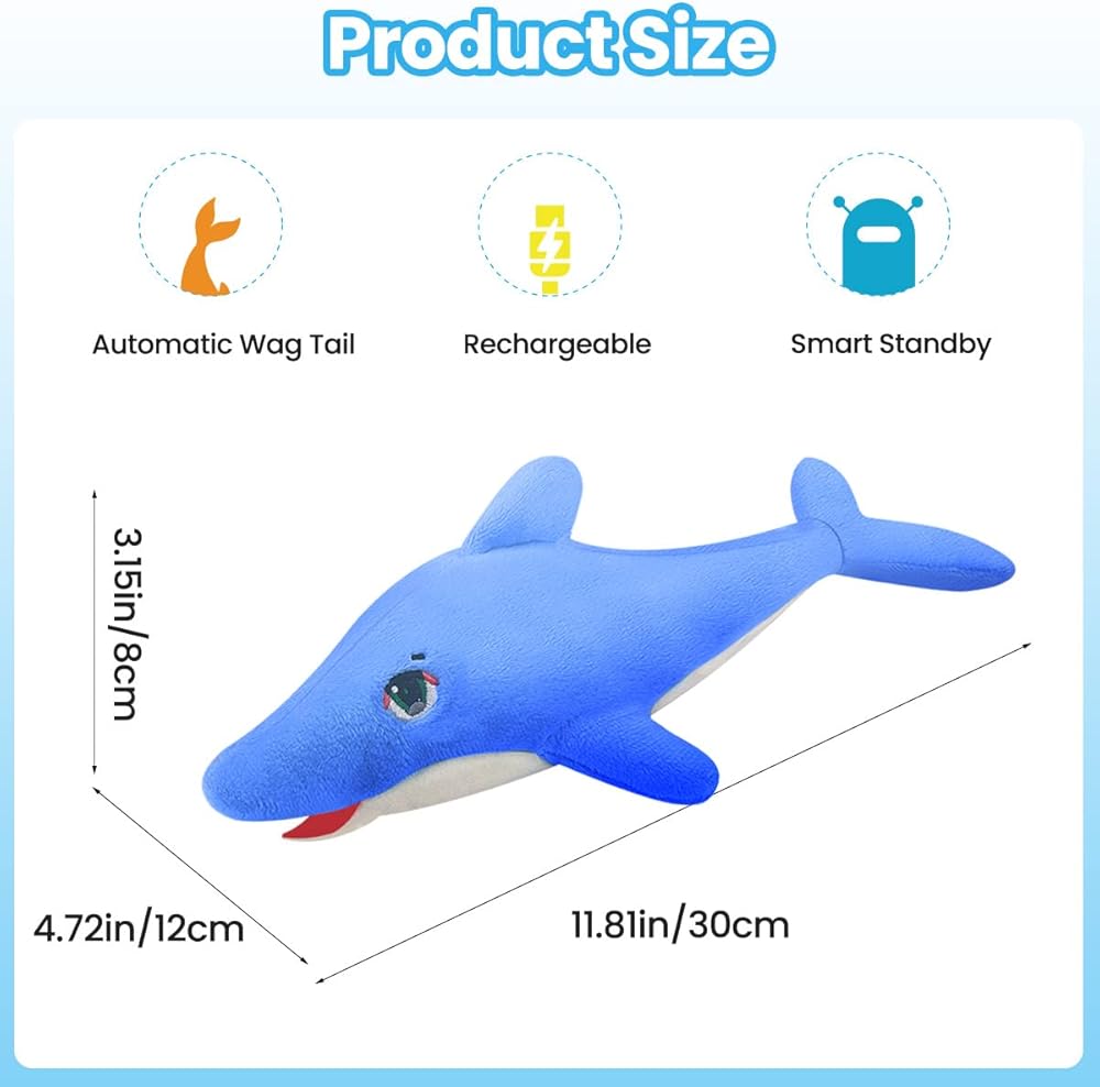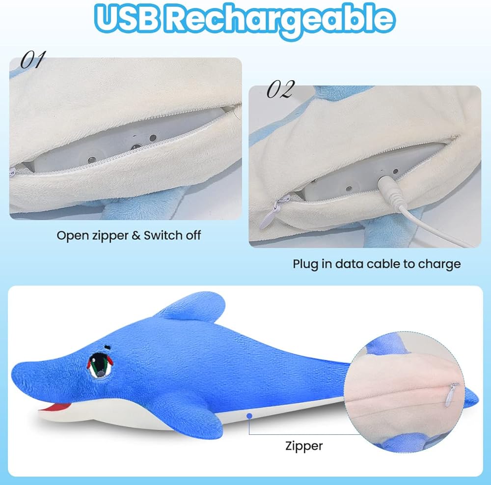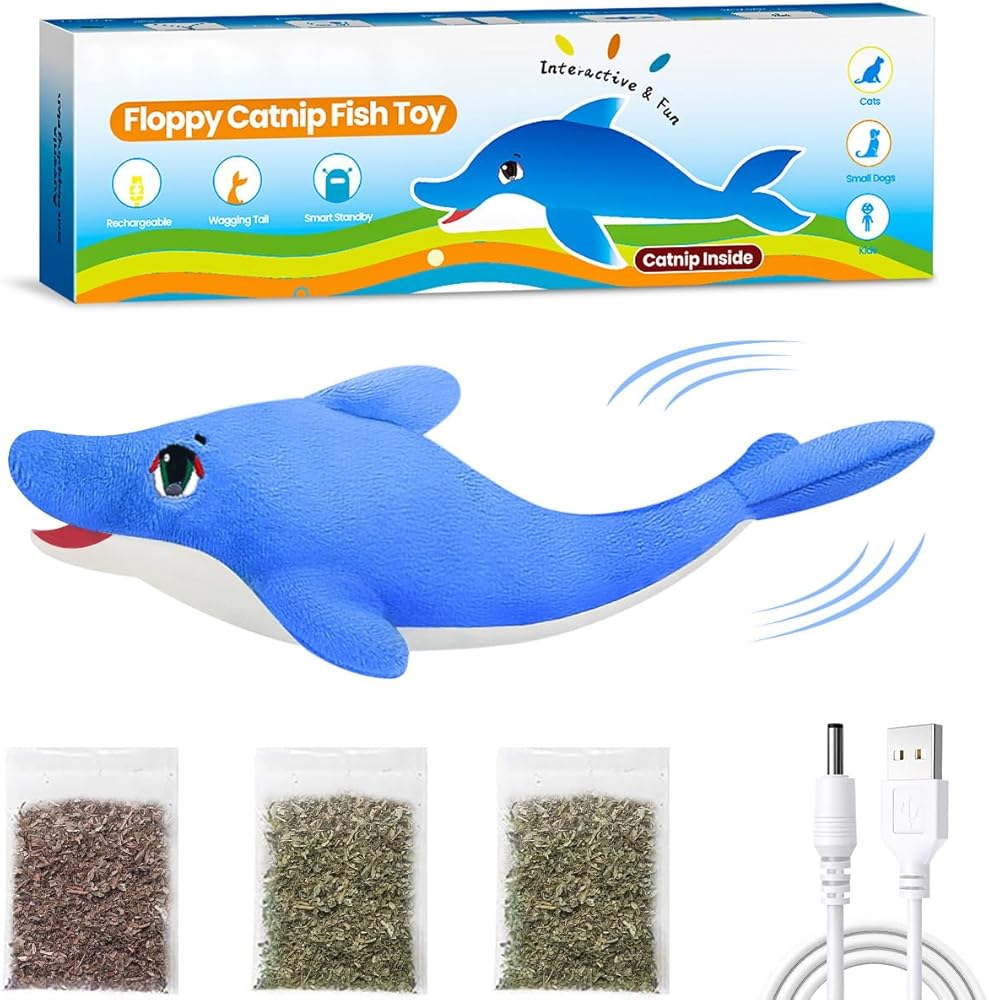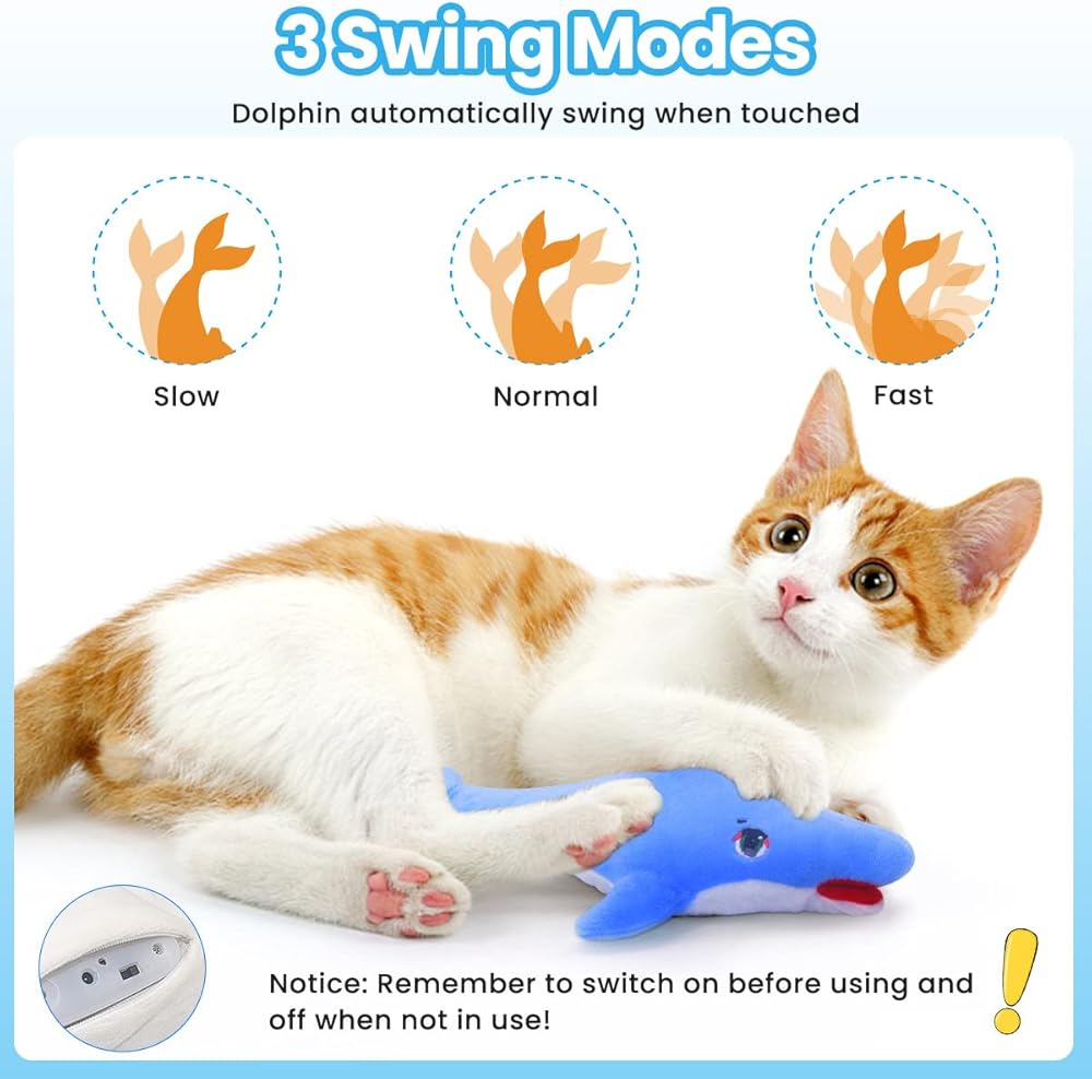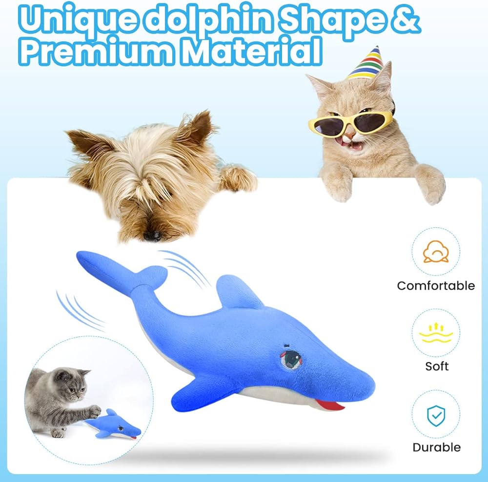 ألعاب Aucenix المرنة للقطط النعناع البري، لعبة القطط الكهربائية التفاعلية المرفرفة لمضغ القطط في الأماكن المغلقة، لعبة ركل الأسماك المتحركة واقعية مع شاحن USB، محاكاة الذيل الذي يهز تلقائيًا (دولفين)