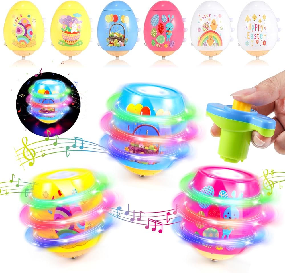 حشوات سلة عيد الفصح للأطفال الصغار، هدايا لعبة بيض عيد الفصح المضيئة للأطفال، Utbttor 6 قمم دوارة لبيض عيد الفصح مع فلاش وموسيقى، هدايا عيد الفصح للأطفال، جائزة صيد بيض عيد الفصح، حشو حقيبة جودي للأطفال