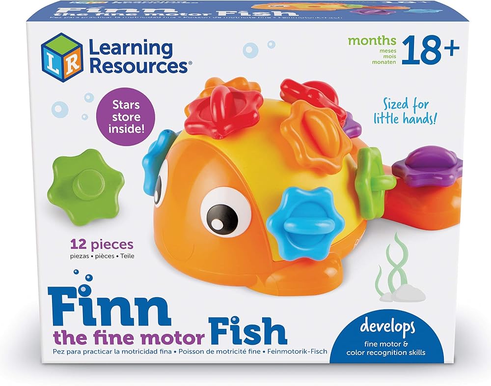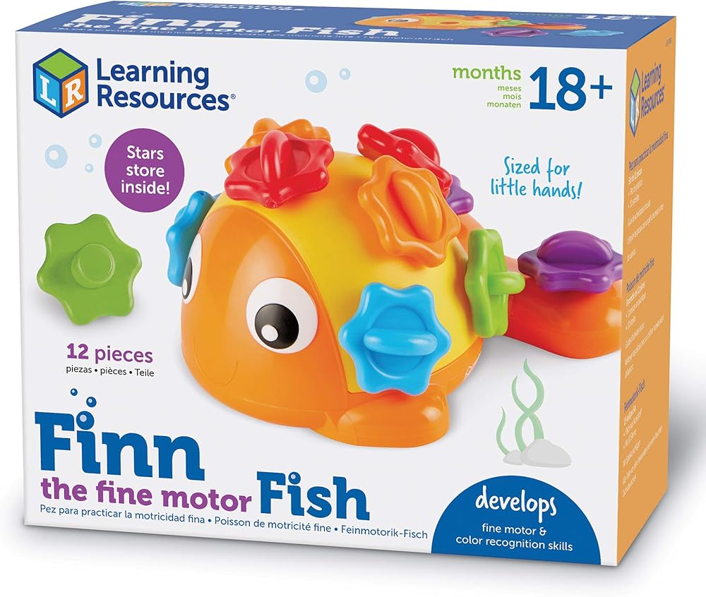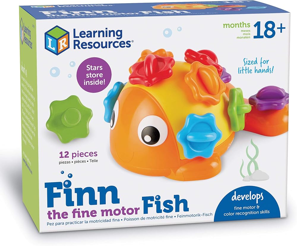 Learning Resources Finn the Fine Motor Fish - 12 قطعة، للأعمار من 18 شهرًا فما فوق، لعبة حسية وحركية دقيقة، ألعاب العد والتعرف على الألوان، ألعاب تعليمية للأطفال الصغار، ألعاب مونتيسوري للأطفال الصغار