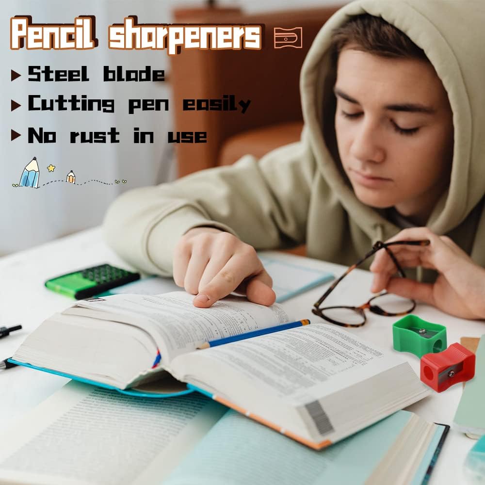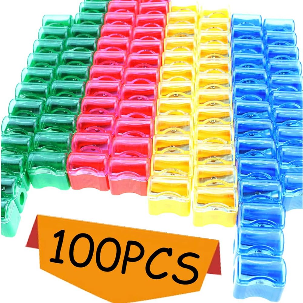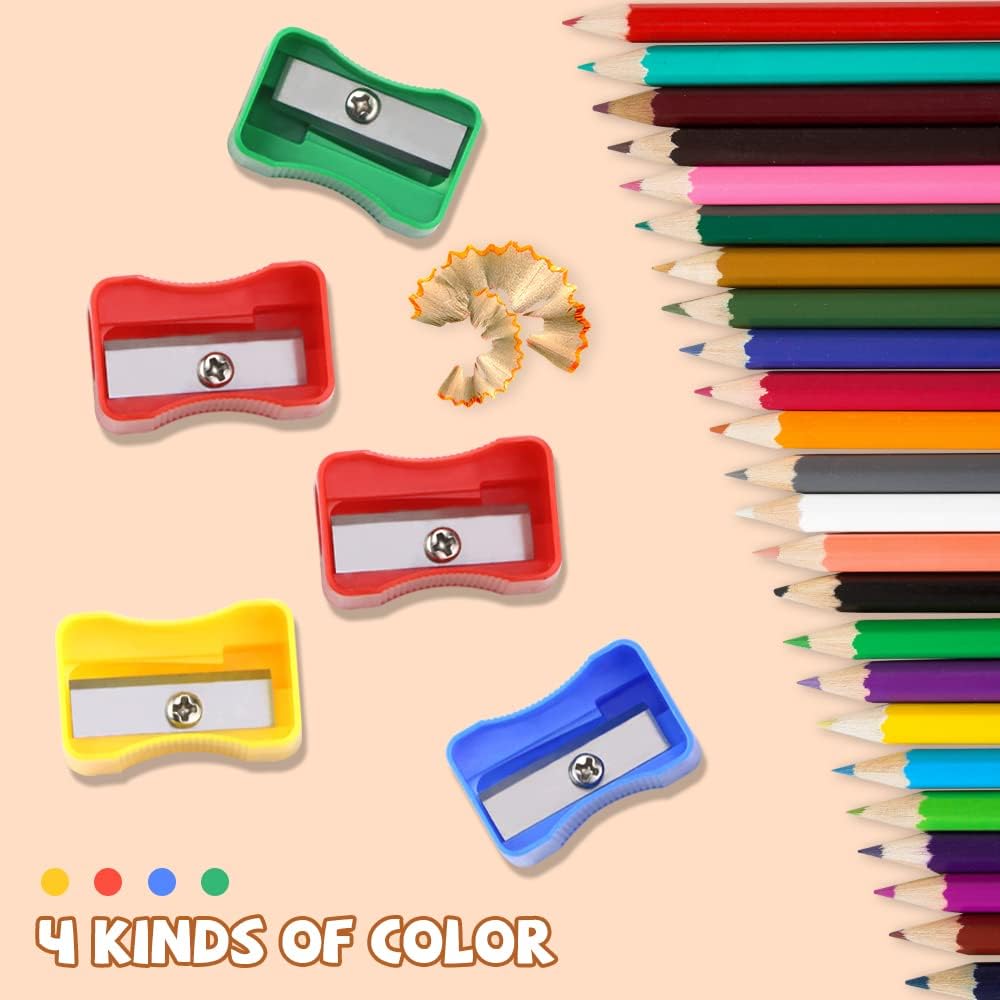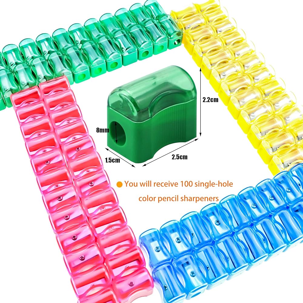 • 100 قطعة مبراة أقلام بلاستيكية صغيرة، تتضمن أربعة ألوان: الأحمر والأصفر والأخضر والأزرق، 25 قطعة لكل لون. وزعي عدد المبراة بالتساوي لضمان حصول طفلك على ما يكفي من الألوان المفضلة لديه