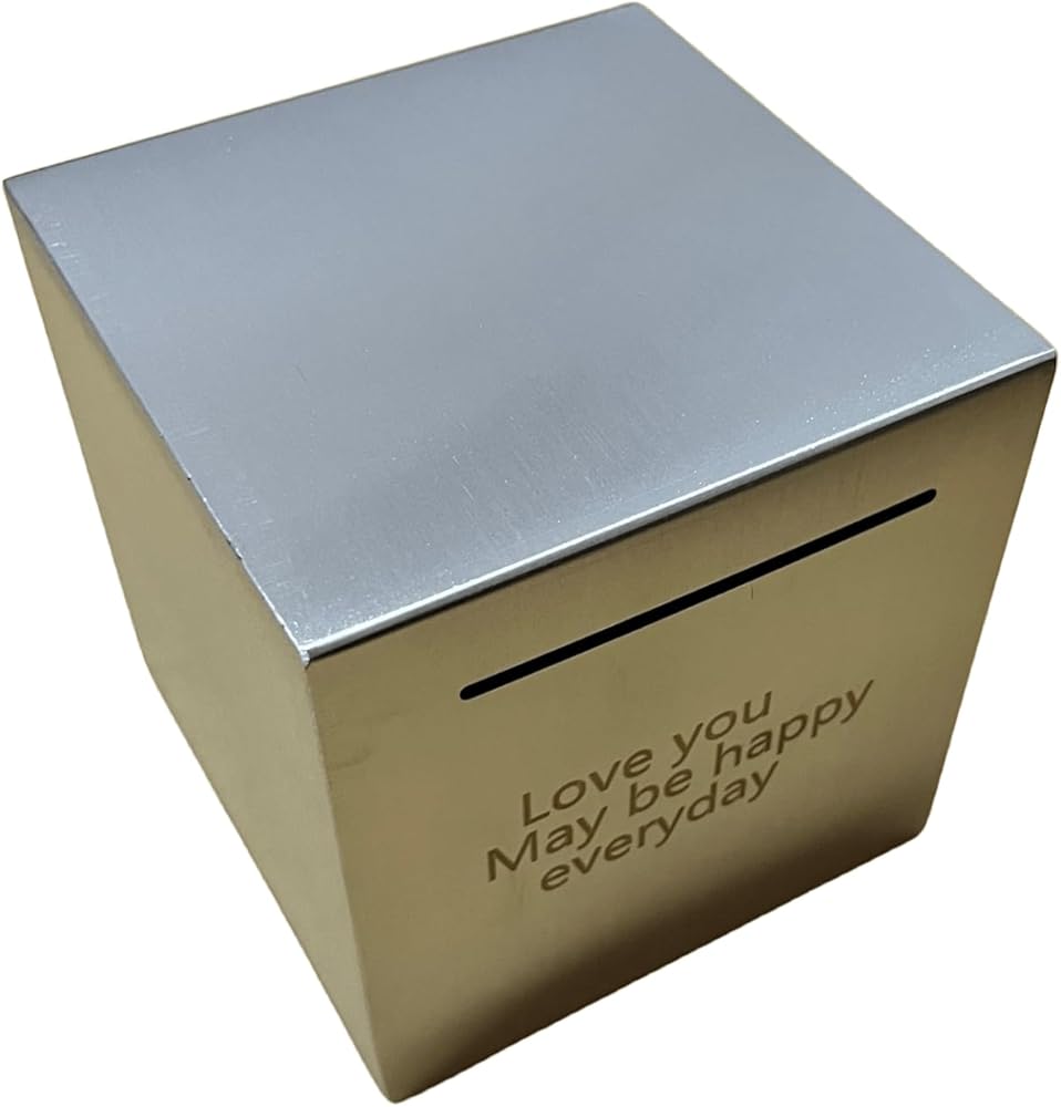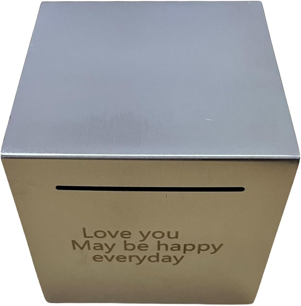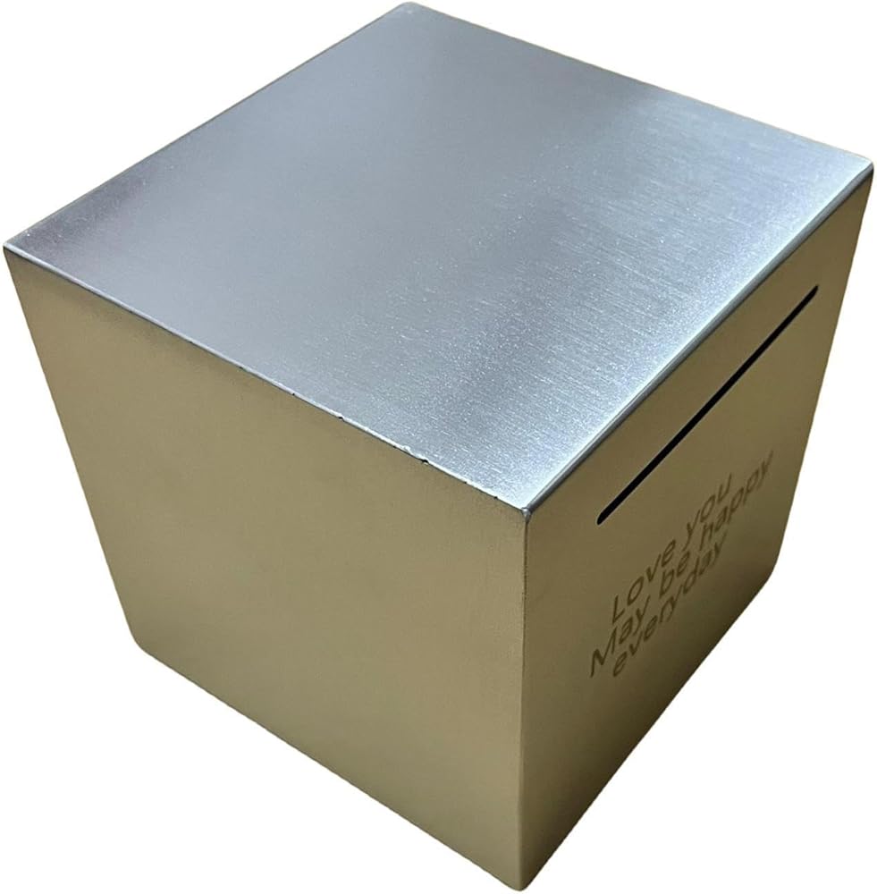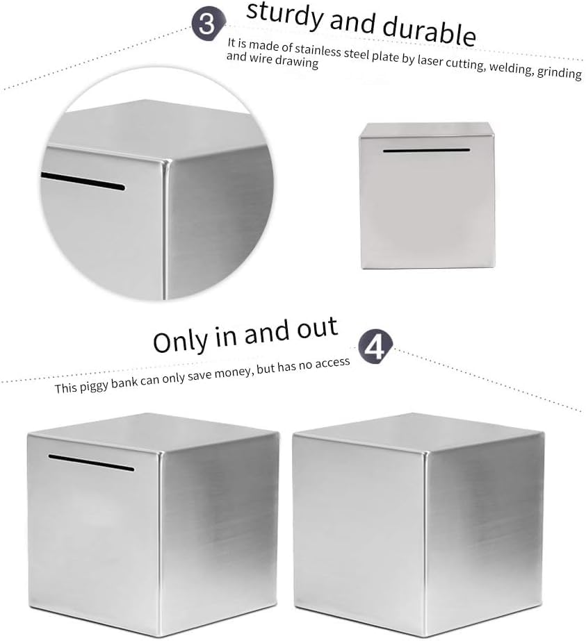1. الحصالة الخنزيرية مصنوعة من الفولاذ المقاوم للصدأ ولها سعة كبيرة. الحجم: 4.72 × 4.72 × 4.72 بوصة، يمكن تخزين 500 ورقة نقدية