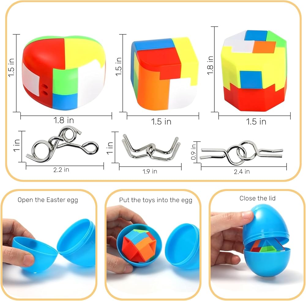 🎁بيض عيد الفصح مع ألعاب ألغاز تحفيز الدماغ: جميع بيض عيد الفصح مع الألعاب خفيفة الوزن وصغيرة الحجم، لذلك لن تشغل مساحة كبيرة في جيبك أو محفظتك أو حقيبة ظهرك. يمكنك أخذ حشو بيض عيد الفصح للأطفال في أي مكان، سواء كنت ذاهبًا إلى المدرسة أو خارجًا مع الأصدقاء. املأ البيض بالألغاز المحفزة للعقل، وامنحه هذه الحفلة المفضلة للألعاب السائبة لجوائز الأطفال.