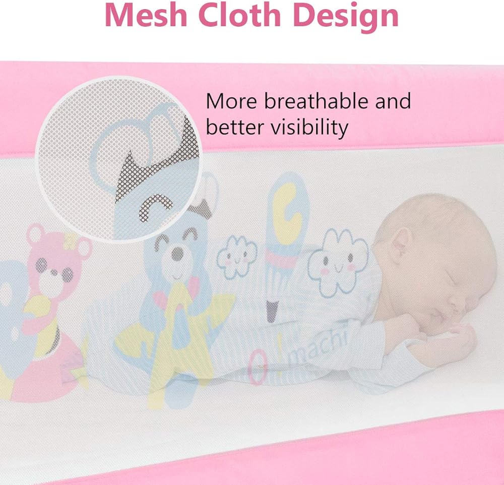[مادة ممتازة وهيكل قوي]: غطاء السرير هذا مغطى بقطعة قماش أكسفورد 210D، وهي مقاومة للاهتراء وآمنة على الطفل للمسها. يمنع القطن الناعم من الداخل قوة التأثير ويوفر حماية أفضل. الأنابيب الفولاذية الممتازة ذات السطح المطلي بالمسحوق متينة ومستقرة بدرجة كافية دون أي تذبذب.