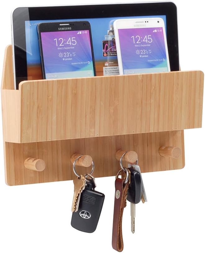منظم مستلزمات الحيوانات الأليفة من الخيزران الكل في واحد، حامل/رف مقود الكلب المثبت على الحائط، مساحة إضافية لتخزين مستلزمات الحيوانات الأليفة الأساسية/المفاتيح/الألعاب