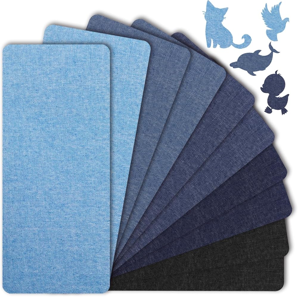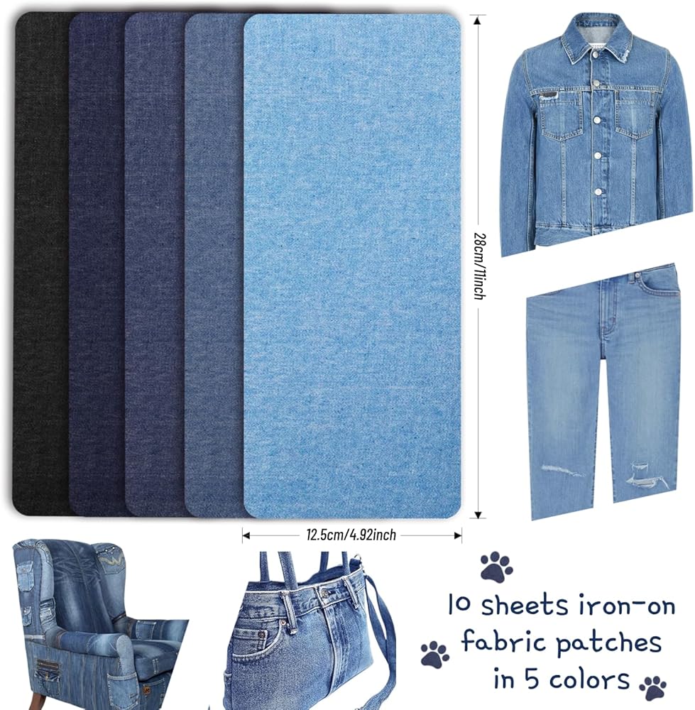 10 ورقات قماشية قابلة للكي على رقع الجينز من أجل بقع الجينز من الحديد على رقع الجينز من داخل الملابس طقم إصلاح وتزيين للسراويل والجيوب والركبتين والأريكة والكوع، 5 ألوان (11 × 4.92 بوصة)