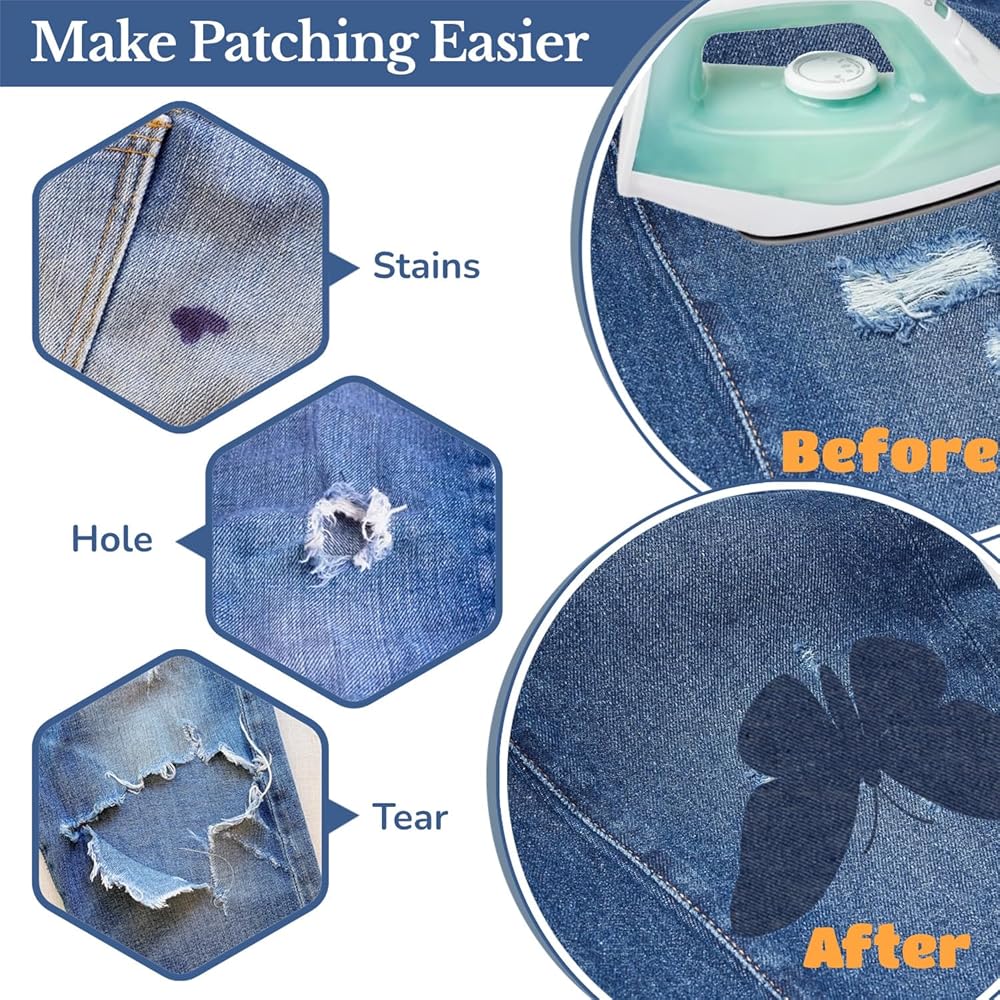 💙 【أفكار يمكنك صنعها بنفسك】يمكنك أيضًا استخدام إبداعك لقص أنماط مخصصة لتزيين الجينز الخاص بك وإضفاء مظهر جديد على ملابس الدنيم الخاصة بك. يمكنك أيضًا استخدامها للحرف اليدوية، وصنع المعلقات الصغيرة، وما إلى ذلك. ستوفر لك رقعاتنا متعددة الوظائف إمكانيات لا حصر لها.