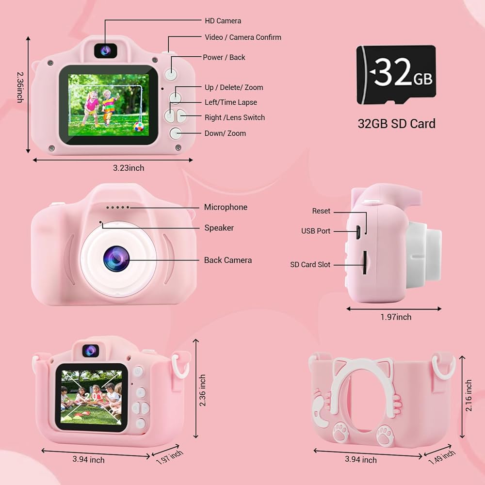 ✔[تشغيل بسيط وسهل الاستخدام] الأزرار بسيطة وسهلة التشغيل، ومصممة خصيصًا للأطفال، ويمكن تعلمها في دقيقة واحدة فقط! صورة شخصية، اضغط على الزر الأيمن للتبديل إلى صفحة التصوير بكاميرا الطفل. الفاصل الزمني، حدد Capture Timer-Off/2s/5s/10s في صفحة الإعداد، ثم اضغط على الزر الأيسر في صفحة التصوير. تكبير 8X، اضغط لفترة طويلة على الزر العلوي للتكبير، اضغط لفترة طويلة على الزر السفلي للتصغير في صفحة التصوير. احذف، اضغط على الزر لأعلى أو لأسفل في وضع التشغيل، ثم حدد تنفيذ وتأكيد.