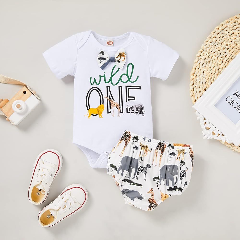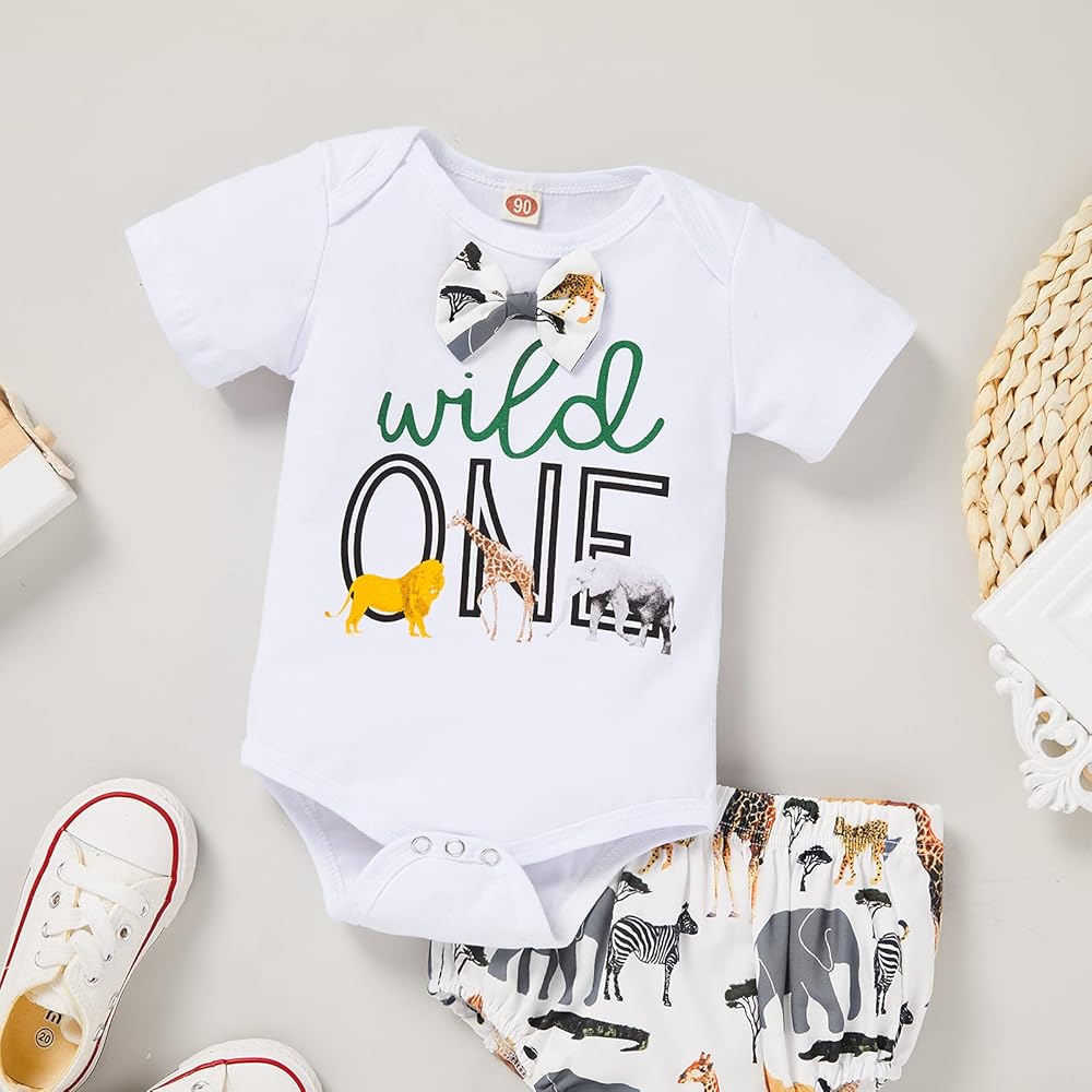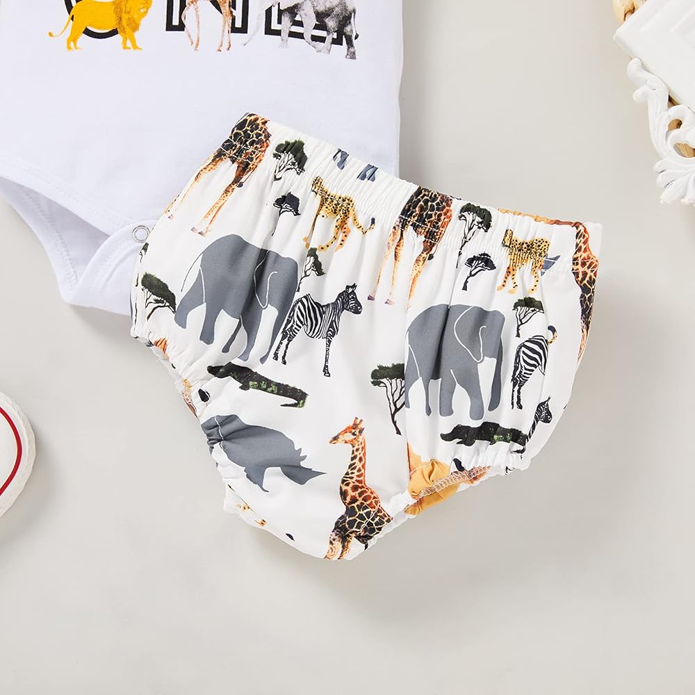 🎂 أجمل ذكرى عيد الميلاد الأول. رومبير مزين بنمط "Wild one" ونمط حيواني، وعقدة جميلة في المقدمة، يجعل طفلك أكثر روعة ووسامًا. شورت حفاضات حيوانات مع حزام خصر مطاطي، مريح لتغيير الحفاضات لطفلك