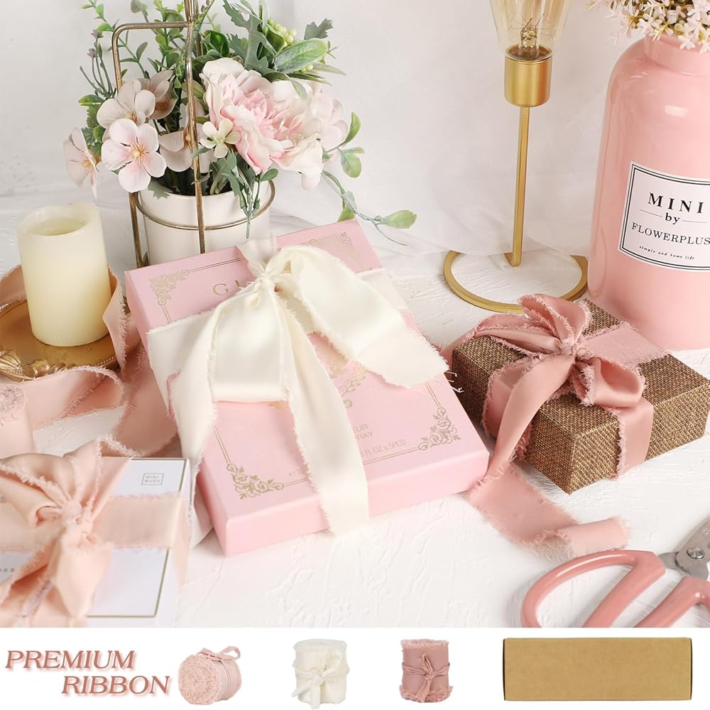 ❤️حجم الشريط القماشي والعبوة - سوف تحصل على 3 لفات من الأشرطة المهترئة معبأة في صندوق ورقي بني، وهي مناسبة للاستخدام والتخزين. يبلغ عرض كل لفة من شريط الحرير والساتان لتغليف الهدايا 1.5 بوصة (3.8 سم) وطولها 5 ياردات. أبعاد مثالية وطول واسع للحرف اليدوية والتعبئة وما إلى ذلك. ملاحظة دافئة: يرجى الانتباه إلى الحجم والكمية قبل الطلب.
