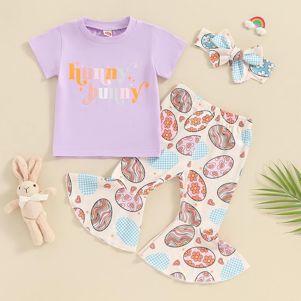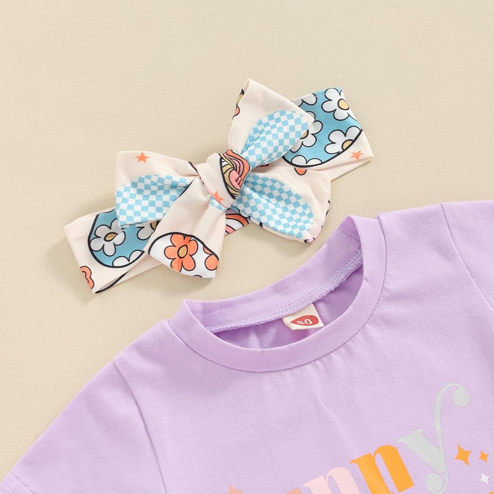 • المقاس: مجموعات ملابس عيد الفصح للفتيات الصغيرات مع عصابة رأس، تناسب عمر 6-12 شهرًا، و12-18 شهرًا، و18-24 شهرًا، و2t، و3t، و4t للفتيات الصغيرات. طقم تي شيرت وسروال ضيق بأكمام قصيرة للفتيات الصغيرات، طقم سراويل واسعة من الملابس القطنية، نحن على يقين من أنها ستحبه!