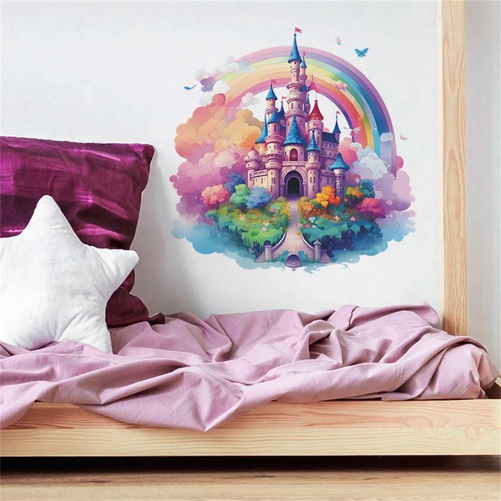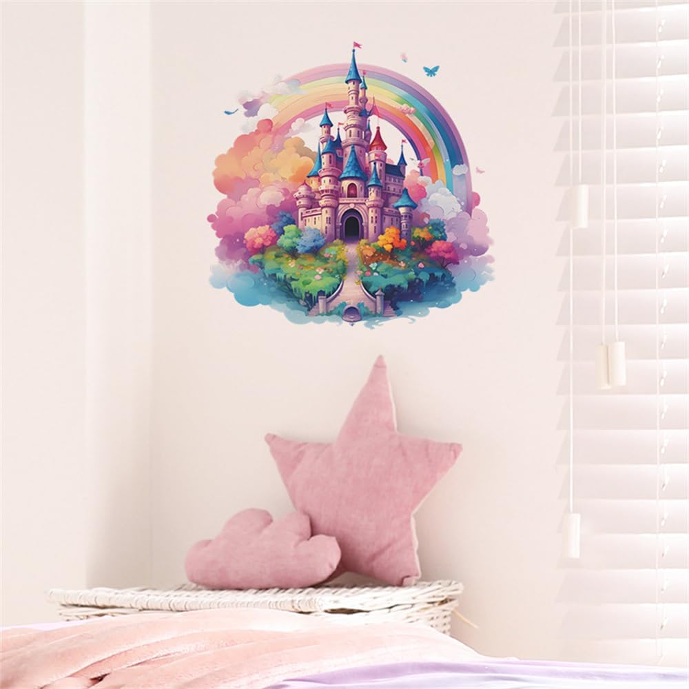 ملصق الحائط على شكل قلعة مثالي للاستخدام اليومي، حيث تشتمل العناصر على فراشة جميلة وقوس قزح كبير وقلعة خيالية. يمنح منزلك مظهرًا جديدًا، كما أنه هدية مثالية لأطفالك وأصدقائك.