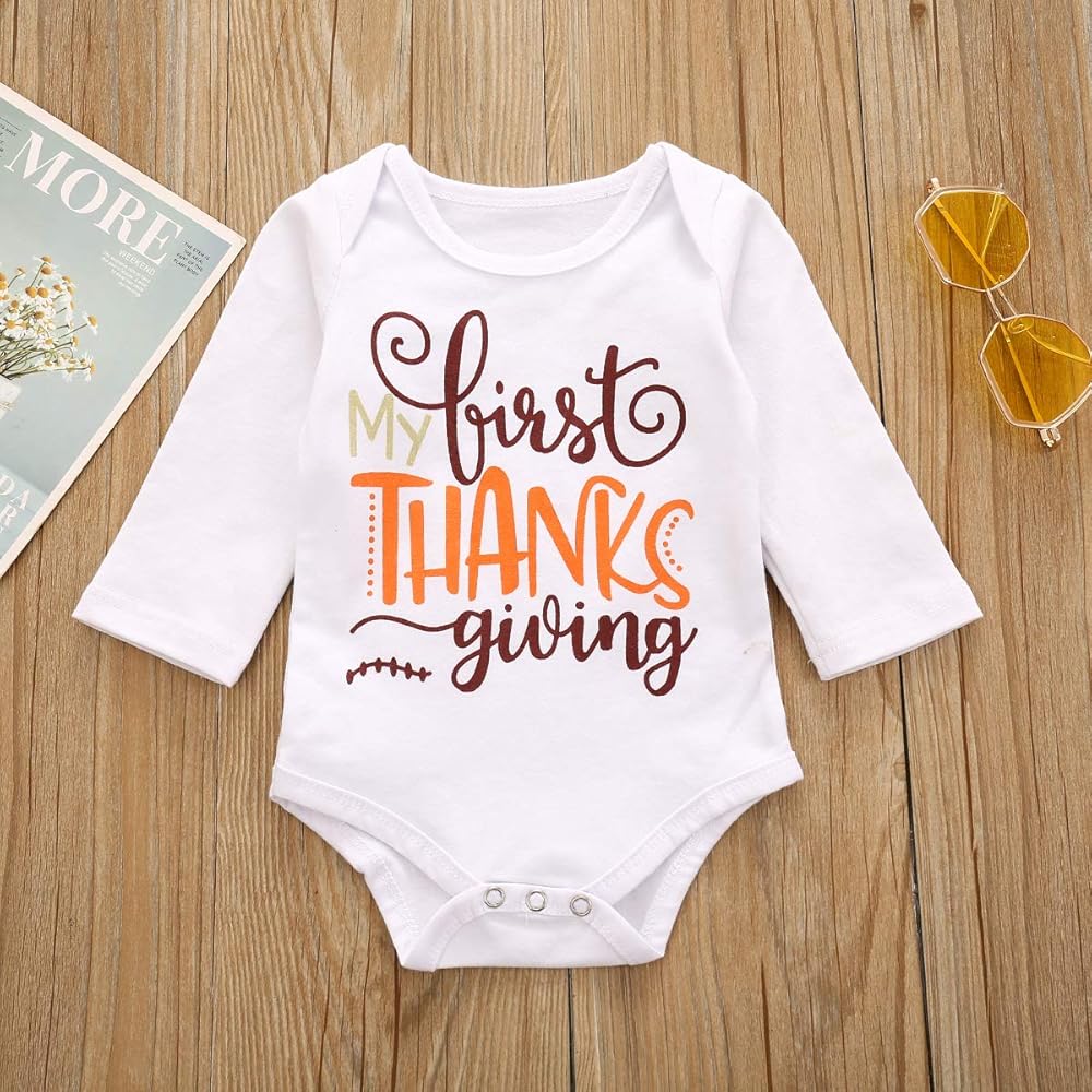 ملابس عيد الشكر مناسبة تمامًا للأطفال البنات من سن 0 إلى 3 أشهر، و3-6 أشهر، و6-12 شهرًا، و12-18 شهرًا. يرجى التحقق من تفاصيل الحجم.
