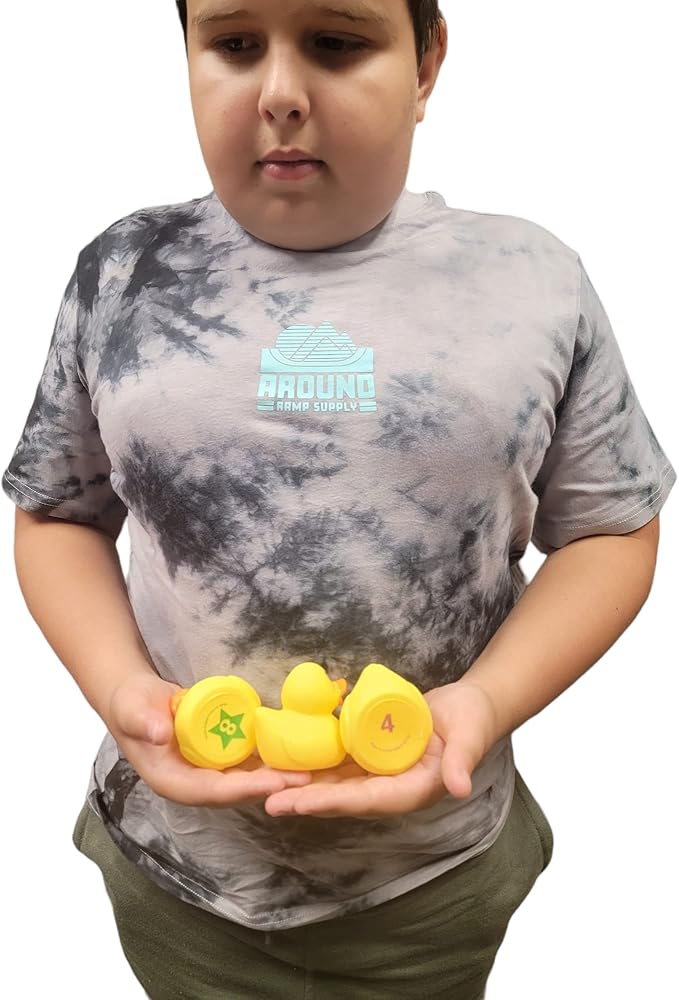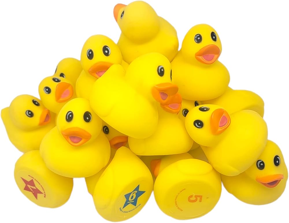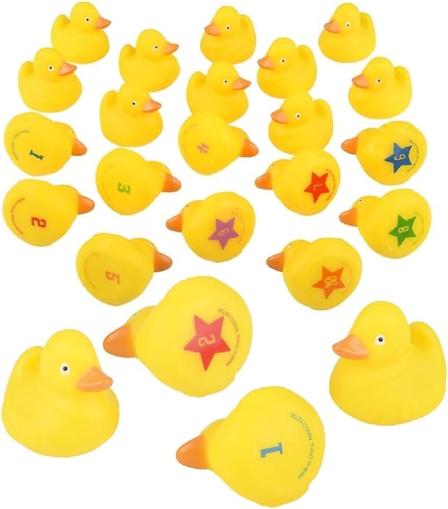 تحتوي لعبة مطابقة البط المطاطي الأصفر على 20 بطة مرقمة من 1 إلى 10. هذه البط لا تطفو لأنها مصنوعة من المطاط الناعم وليست مثقلة.