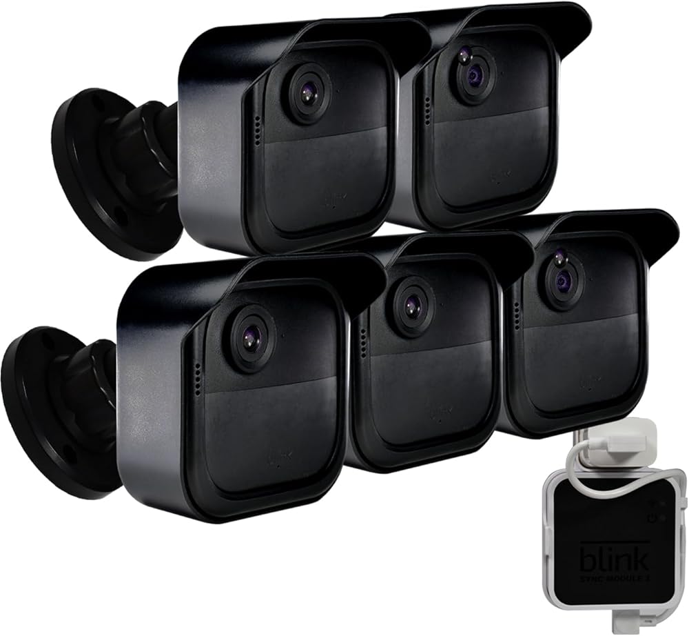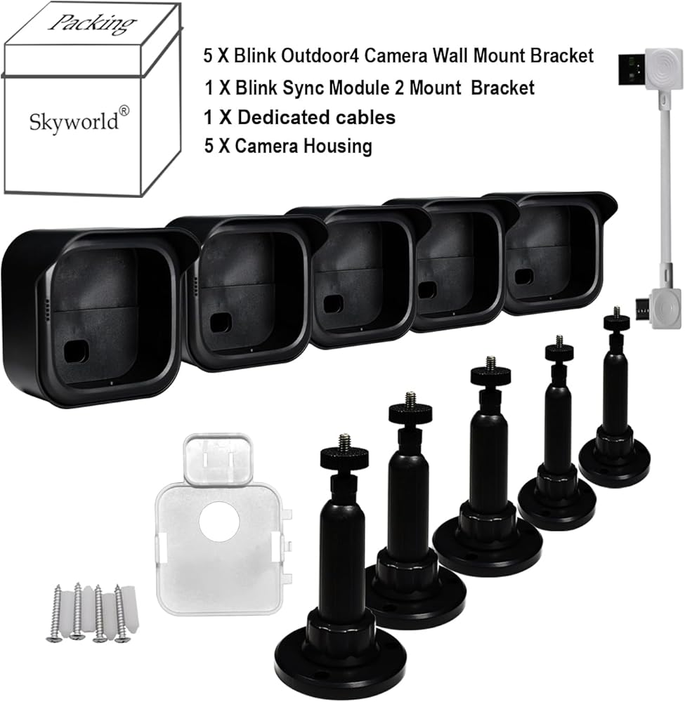 حامل الكاميرا الخارجية Blink الجديد كليًا من Skyworld، غطاء واقٍ مقاوم للطقس وحامل قابل للتعديل 360 درجة للجيل الرابع من Blink مع وحدة مزامنة Blink 2 وكابل شاحن USB (أسود 5 قطع)