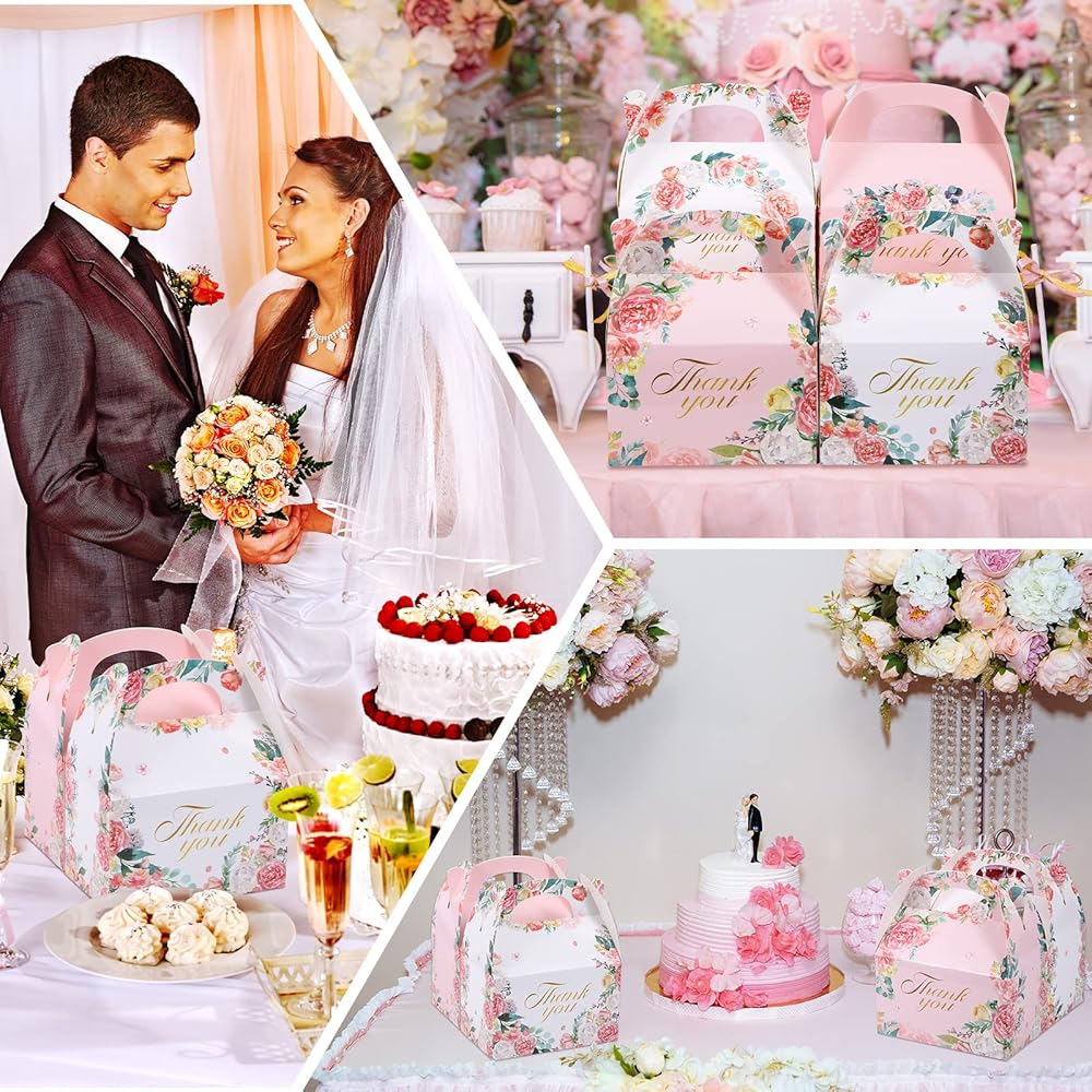 ممتازة وموثوقة: صناديق هدايا الزفاف هذه مصنوعة من ورق مقوى 300 جرام، وهو غير سام وآمن، وقوي ومتين، ولا يتشوه بسهولة؛ يمكن تطبيقها على تعبئة الحلوى والكعك لسهولة حملها